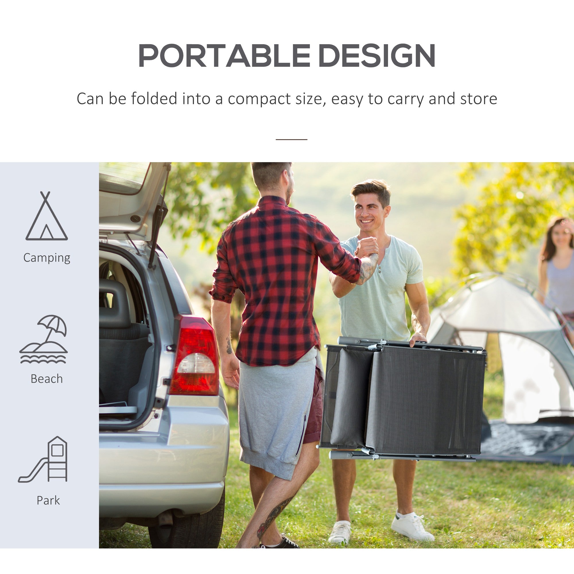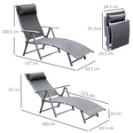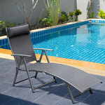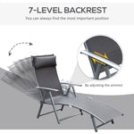 Sun Lounger Steel Frame Outdoor Folding Chaise Texteline Lounge Chair Recliner with Headrest & 7 Levels Adjustable Backrest, Grey