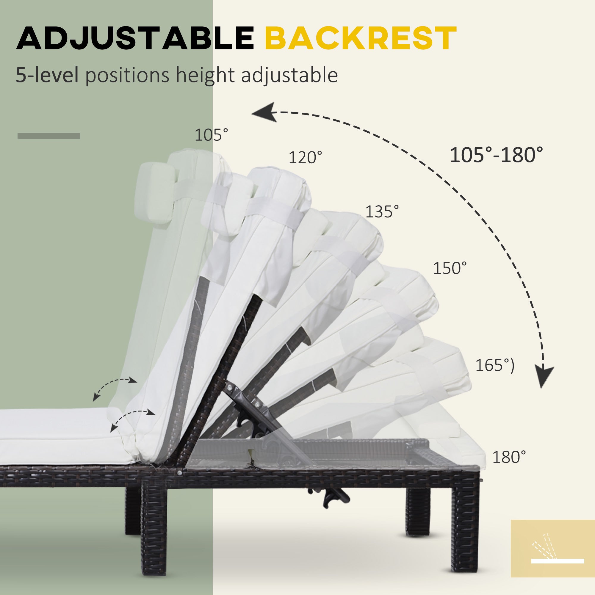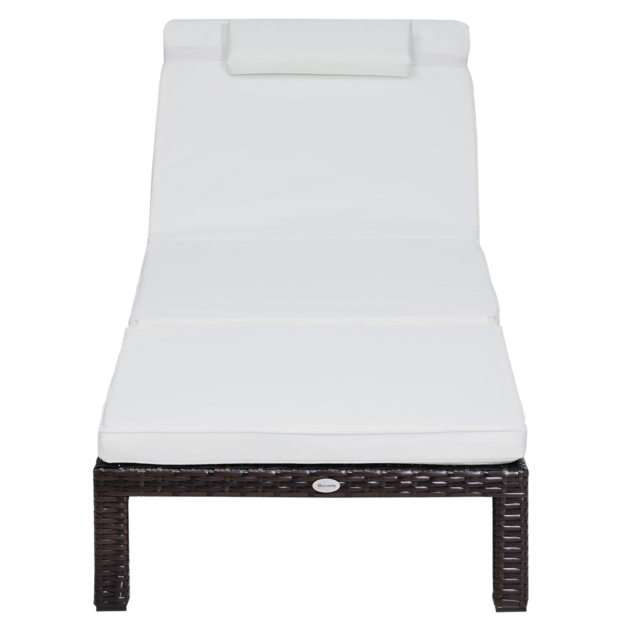 PE Rattan Sun Lounger with Soft Padded Cushion, Patio 5-level Reclining Sun Lounger with Headrest, White