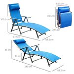 Sun Lounger Steel Frame Outdoor Folding Chaise Texteline Lounge Chair Recliner with Headrest & 7 Levels Adjustable Backrest, Blue
