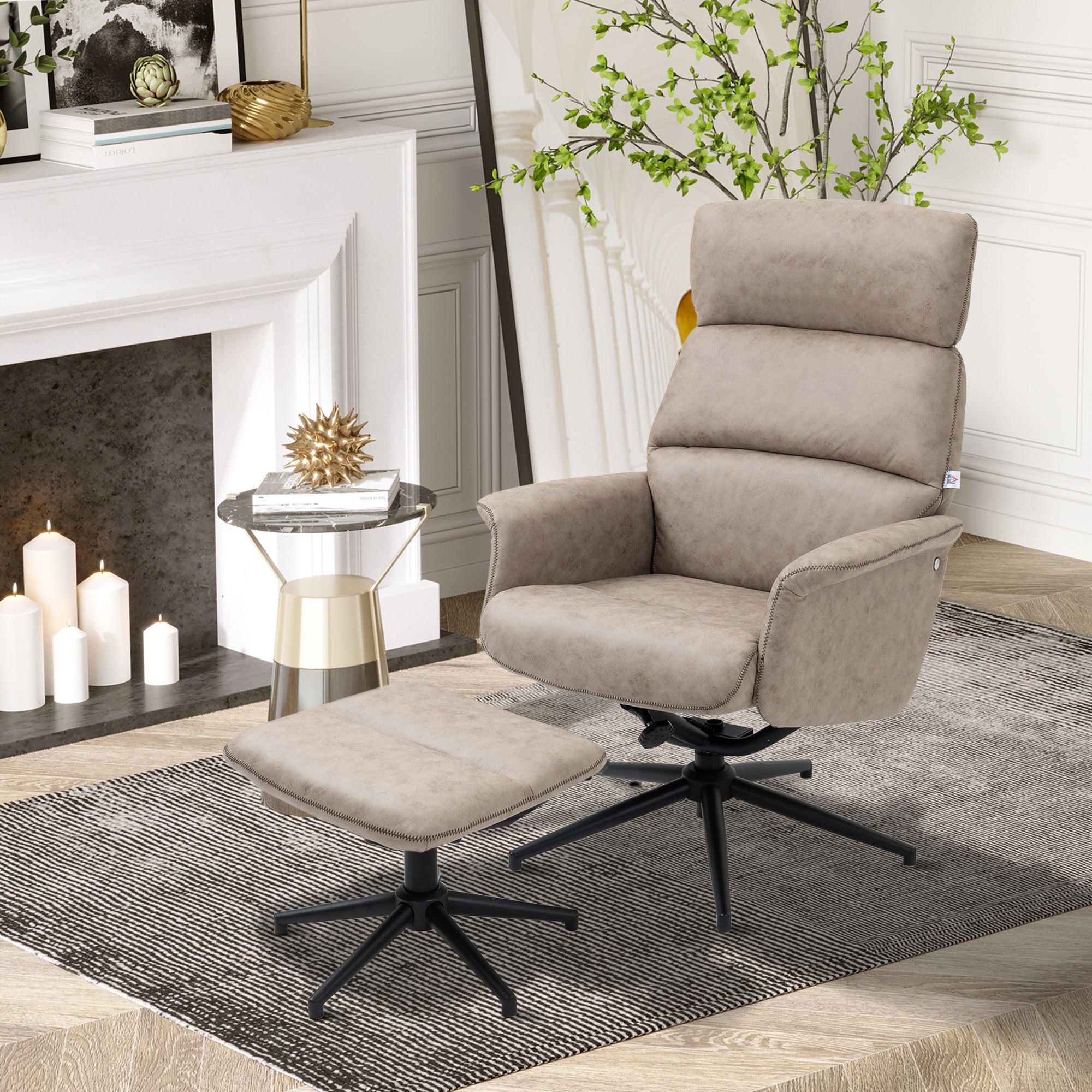 Swivel Recliner Chair and Footstool, Upholstered Reclining Armchair with Ottoman, Adjustable and Removable Headrest, Khaki
