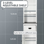 Expand bathroom storage instantly - look to this slim bathroom cabinet. Combines three top shelves, middle drawer and bottom cupboard. Top shelf and inner-cupboard shelf are adjustable to three different levels. Anti-tipping straps to attach this piece to the wall for safety. A great bathroom cupboard for your home.