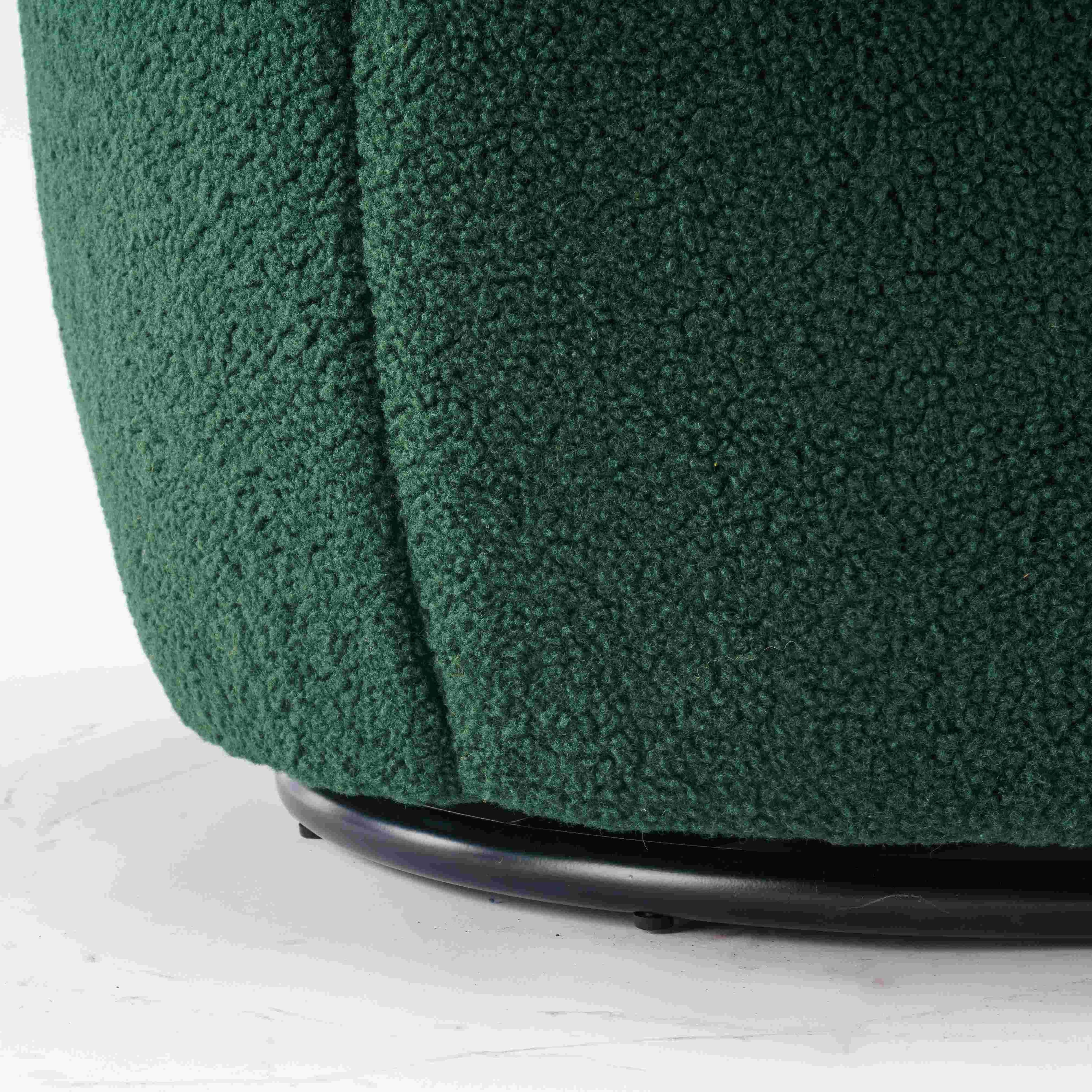 Elevate your living space with the Teddy Fabric Swivel Accent Armchair in dark green. This stylish barrel chair features a soft teddy fabric material, foam filling, and a sturdy wooden frame, all supported by a black powder-coated metal ring for a sleek finish. Measuring 64L x 64W x 71H cm and weighing 12kg, it offers a comfortable ergonomic backrest and a 360° swivel function, making it perfect for any room from the living room to the coffee shop. Easy to assemble in just 10 minutes, this chair is designed for ages 5 to 70 and can support up to 110kg, ensuring both versatility and durability.