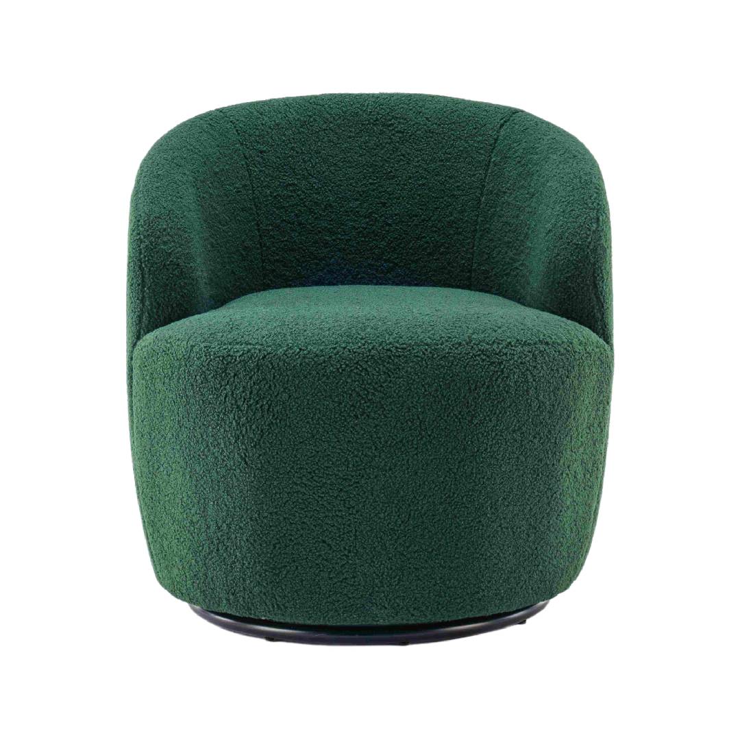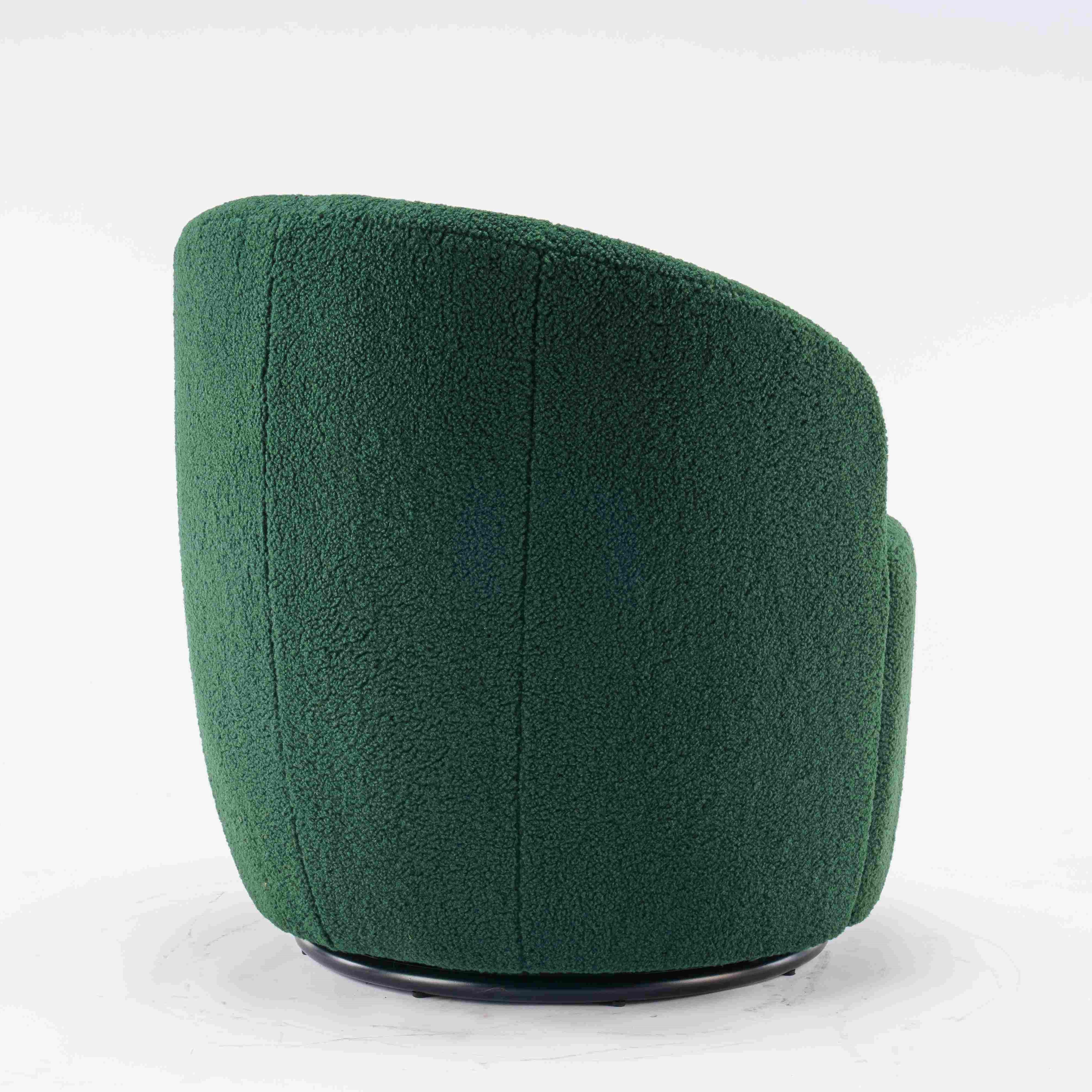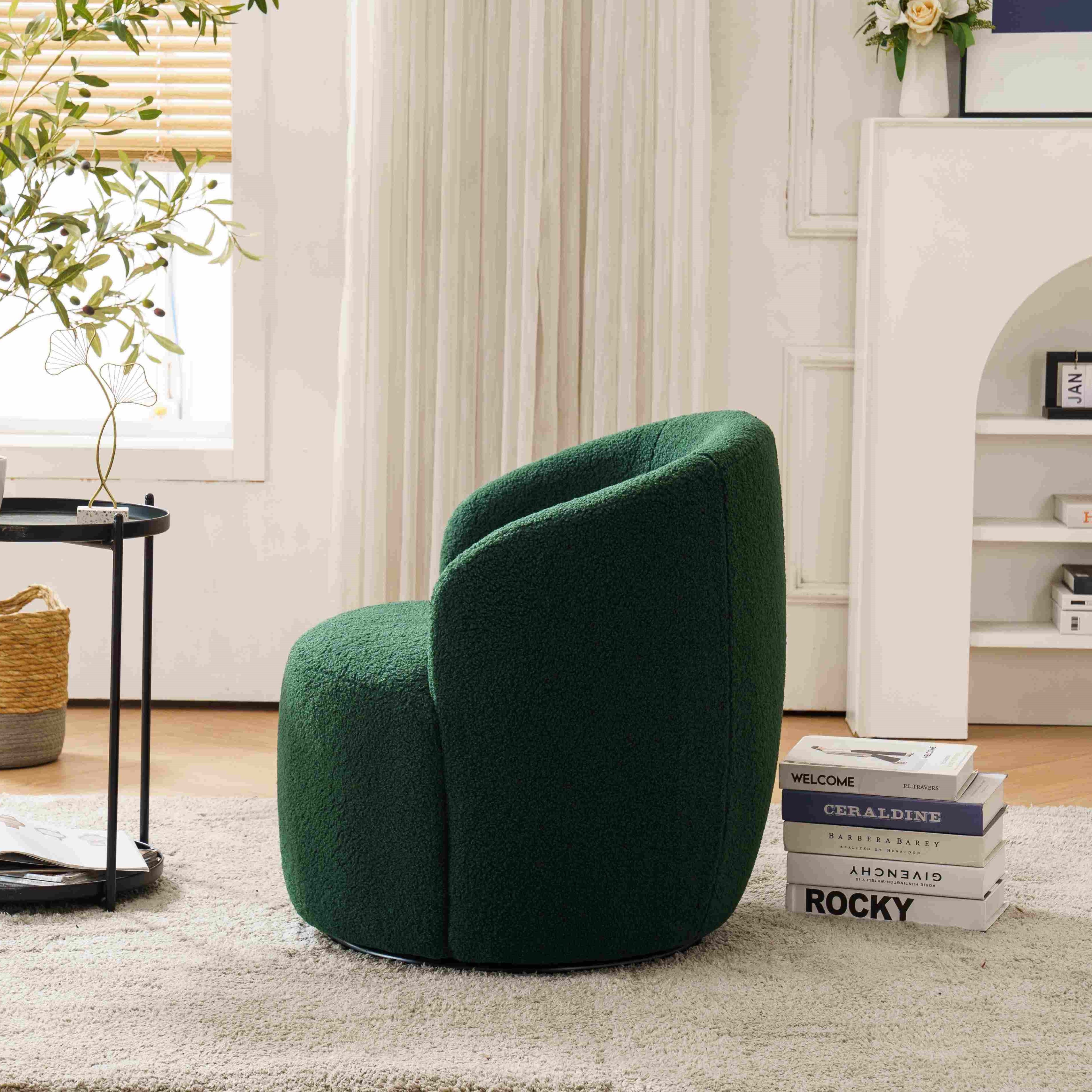 Teddy Fabric Swivel Armchair with Ergonomic Backrest and 360° Rotation, Sofa Chairs for Reading Room, 64x64x71 cm, Dark Green