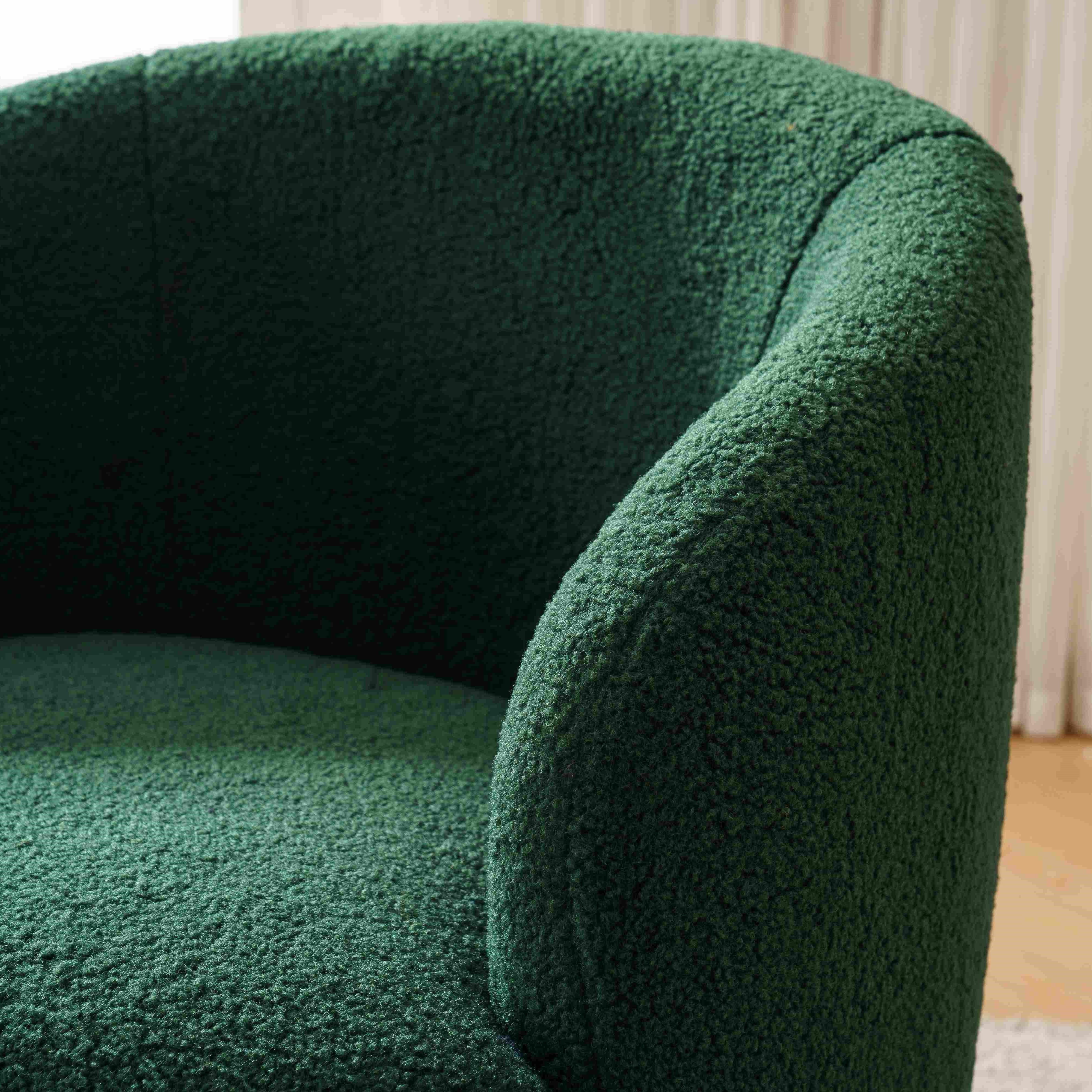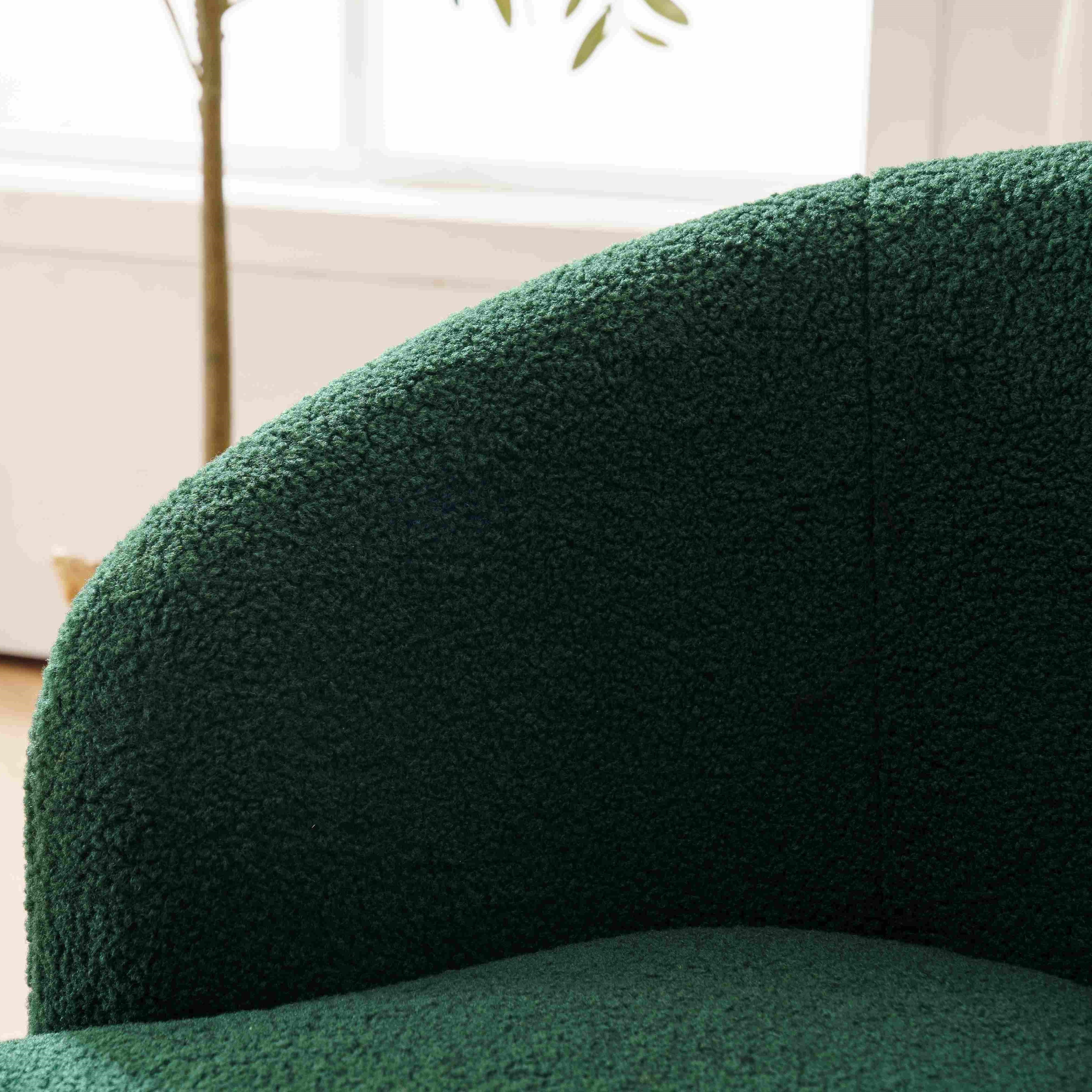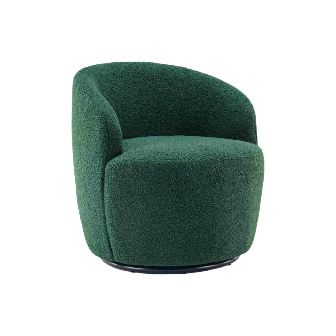 Teddy Fabric Swivel Armchair with Ergonomic Backrest and 360° Rotation, Sofa Chairs for Reading Room, 64x64x71 cm, Dark Green
