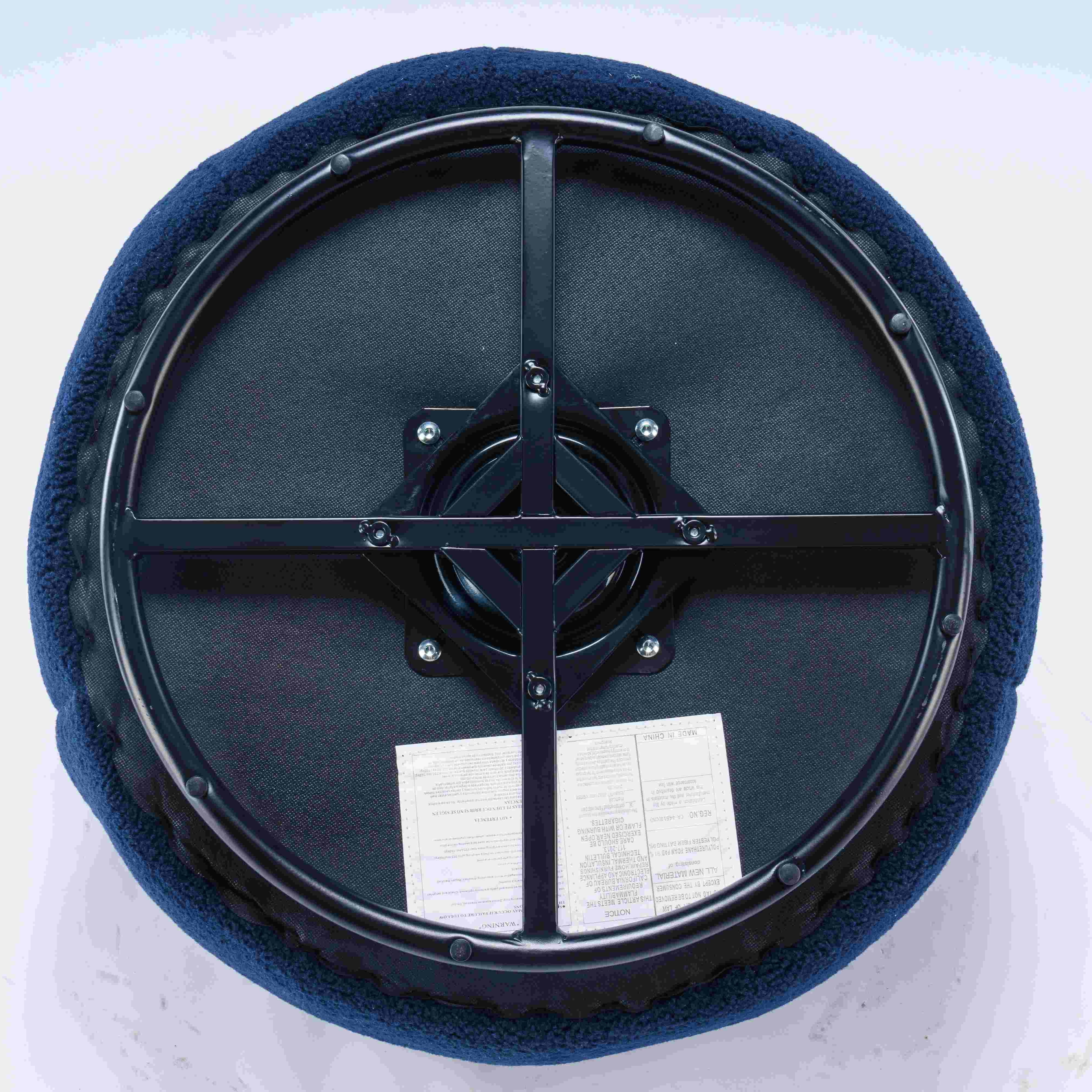 Elevate your living space with the Teddy Fabric Swivel Accent Armchair in dark blue. This stylish barrel chair features a soft teddy fabric material, foam filling, and a sturdy wooden frame with a black powder-coated metal ring for a modern touch. Measuring 64L x 64W x 71H cm when assembled, it offers a comfortable ergonomic backrest and a 360° swivel base, making it perfect for any room from the living room to the coffee shop. Easy to assemble in just 10 minutes, this chair supports up to 110kg and is easy to maintain with spot cleaning.