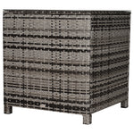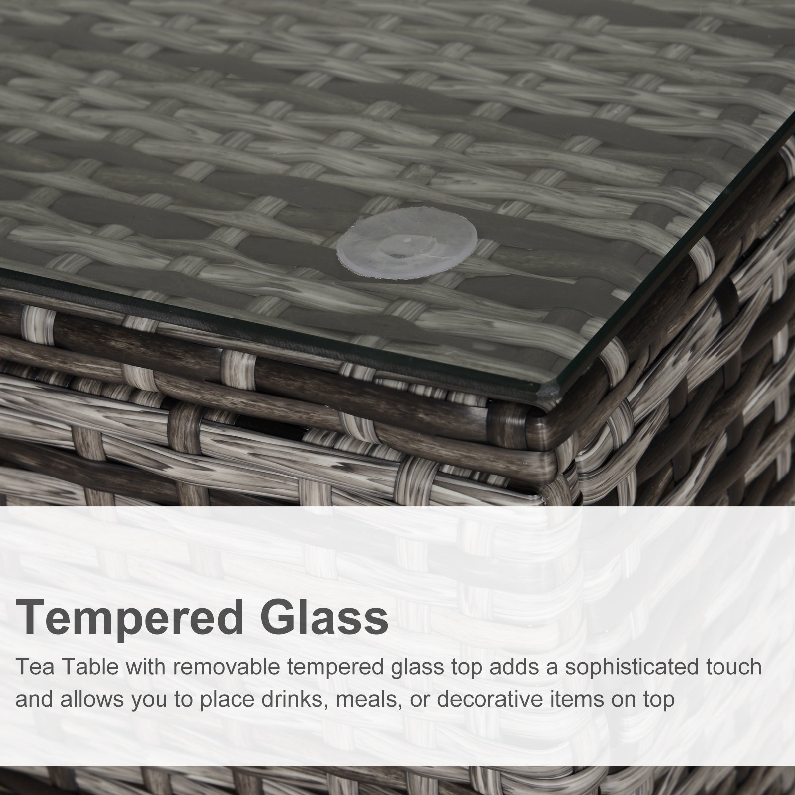Square PE Rattan Garden Table, with Glass Table Top - Grey