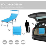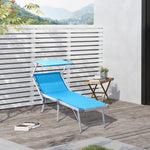 Aluminium Foldable Sun Lounger, Outdoor Adjustable Backrest Reclining Chaise Lounge Chair with Sun Roof, Blue