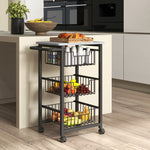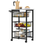 Three Basket Mobile Kitchen Island, with Brakes - Grey/Black