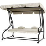 The garden swing bench seamlessly fits any garden, balcony, or porch. Constructed from powder-coated steel, its tiltable backrest transforms the frame into a cosy sun lounger. Equipped with an adjustable-angle polyester canopy, it ensures a shaded area is always available.