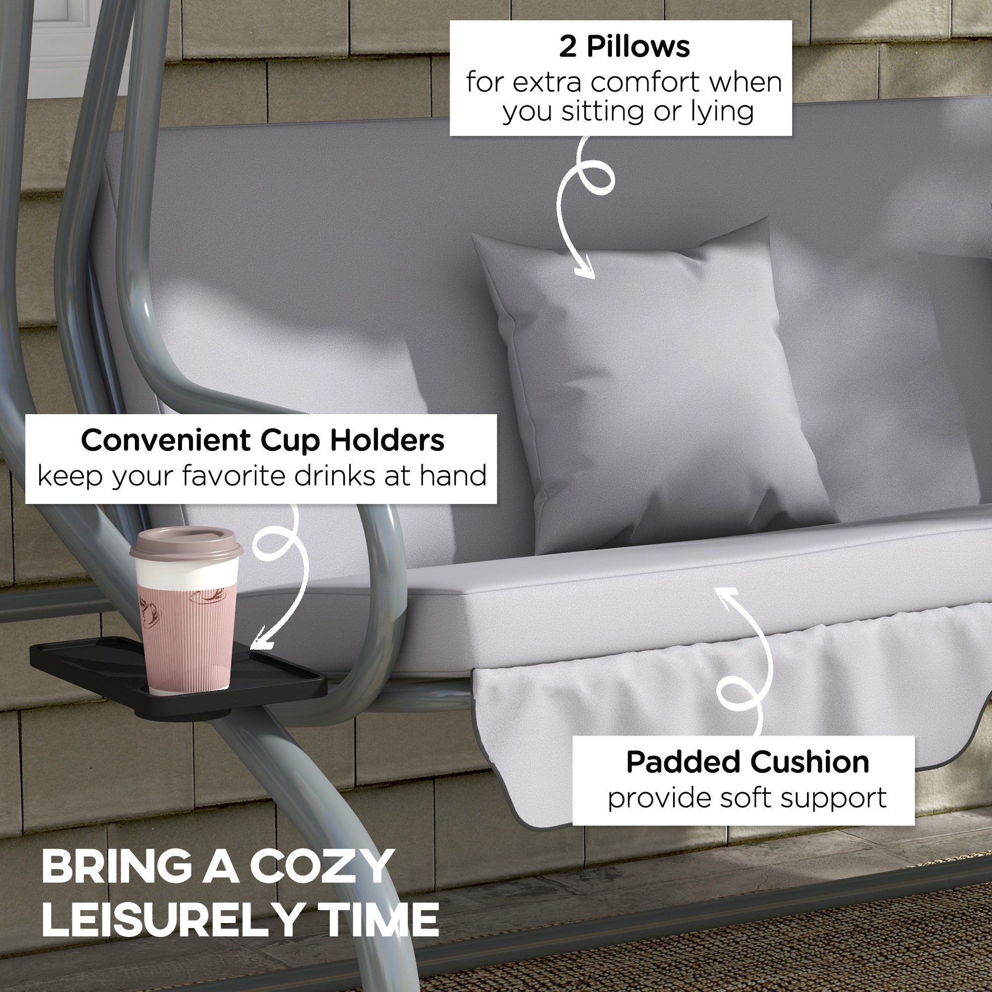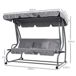 Three-Person garden Swing Chair, with Adjustable Canopy - Light Grey