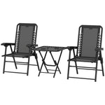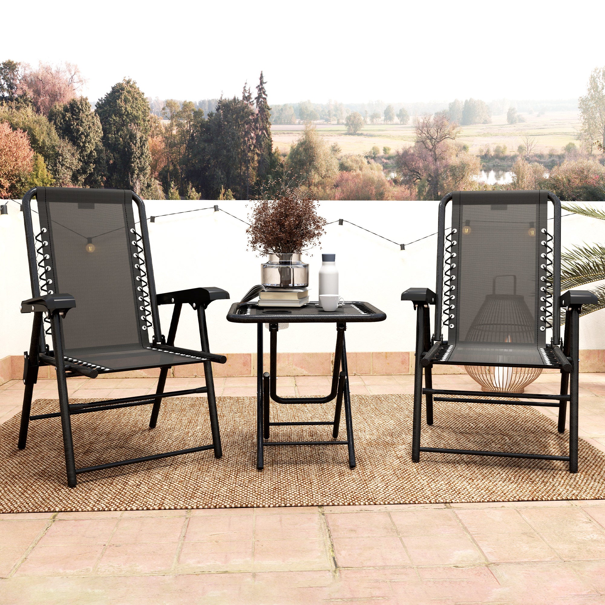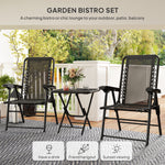 Sit and enjoy the outdoors with company, thanks to this three-piece seating set. Comes with two armchairs and a coffee table. The powder coated steel frames mean a strong, supportive structure. The texteline fabric patio table and chairs are breathable, easy to clean and quick to dry. When not being used, you can fold the balcony table and chairs, easy to carry and store away. The balcony furniture set is a cosy corner for friends to hang out, daily talk and sunset appreciation.