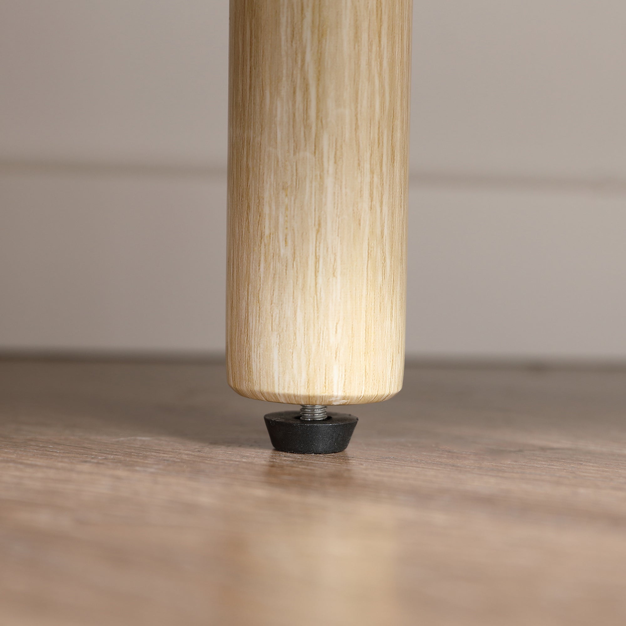 Go classic in the home with this TV unit with storage. An oak wood-effect design, it looks great in plenty of different home interiors. This TV bench comes with a large tabletop to hold a 50" screen, two middle shelves and two end cupboard - plenty of storage for electronics, accessories, magazines, books and DVDs. Complete with two cable holes on the back to keep wires together so they don't tangle.
