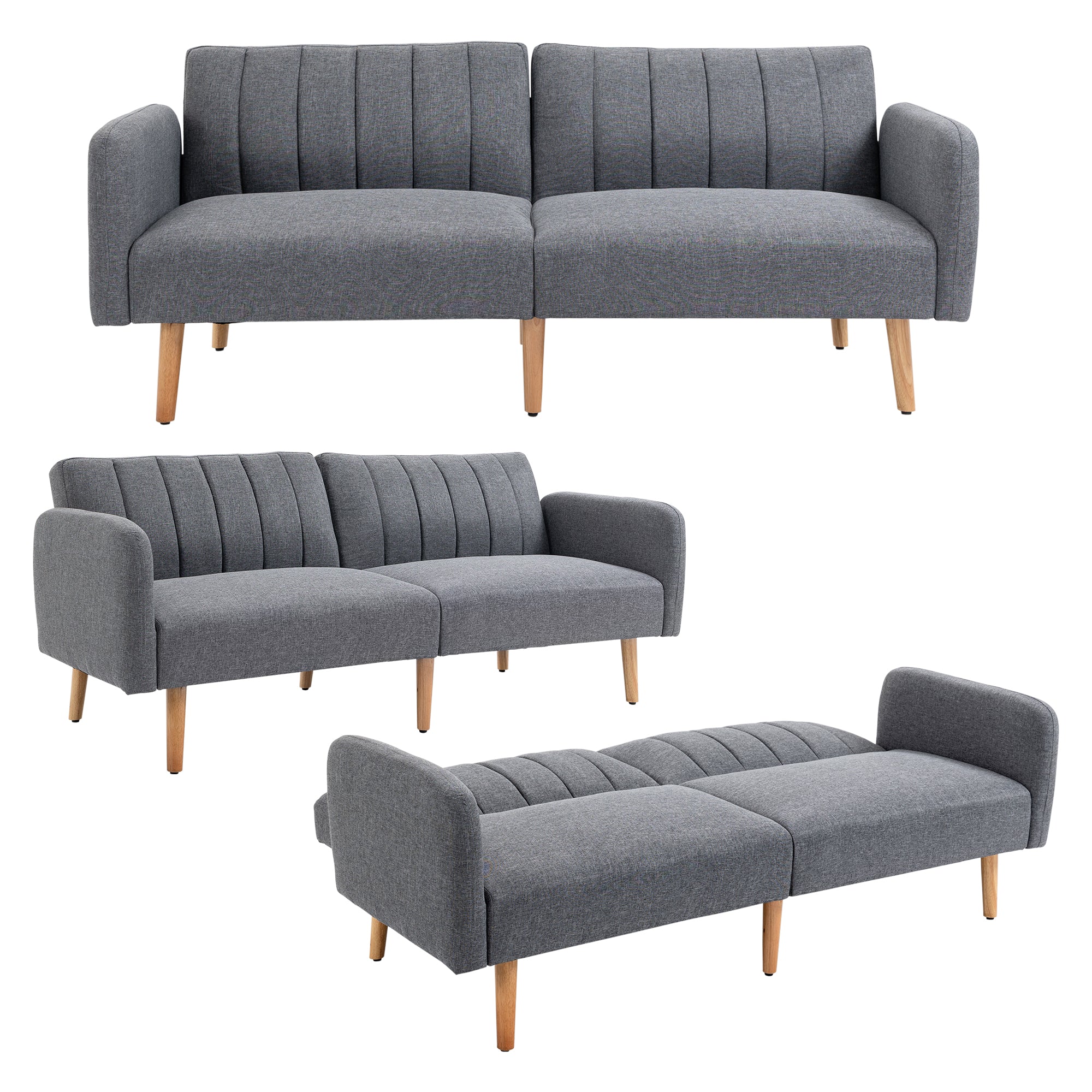 3 Seater Sofa Bed, Convertible Linen Fabric Sofa Couch, Click Clack Sofabed with Adjustable Split Backrest for Living Room, Bedroom, Guest Room, Grey