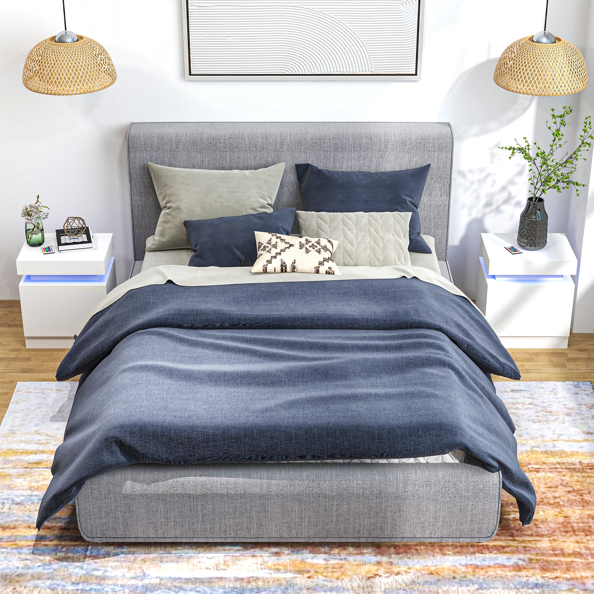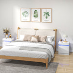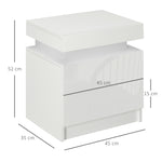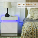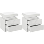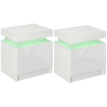 Set of 2 White Bedside Tables with LED Lights, High Gloss Front Nightstands with 4 Drawers