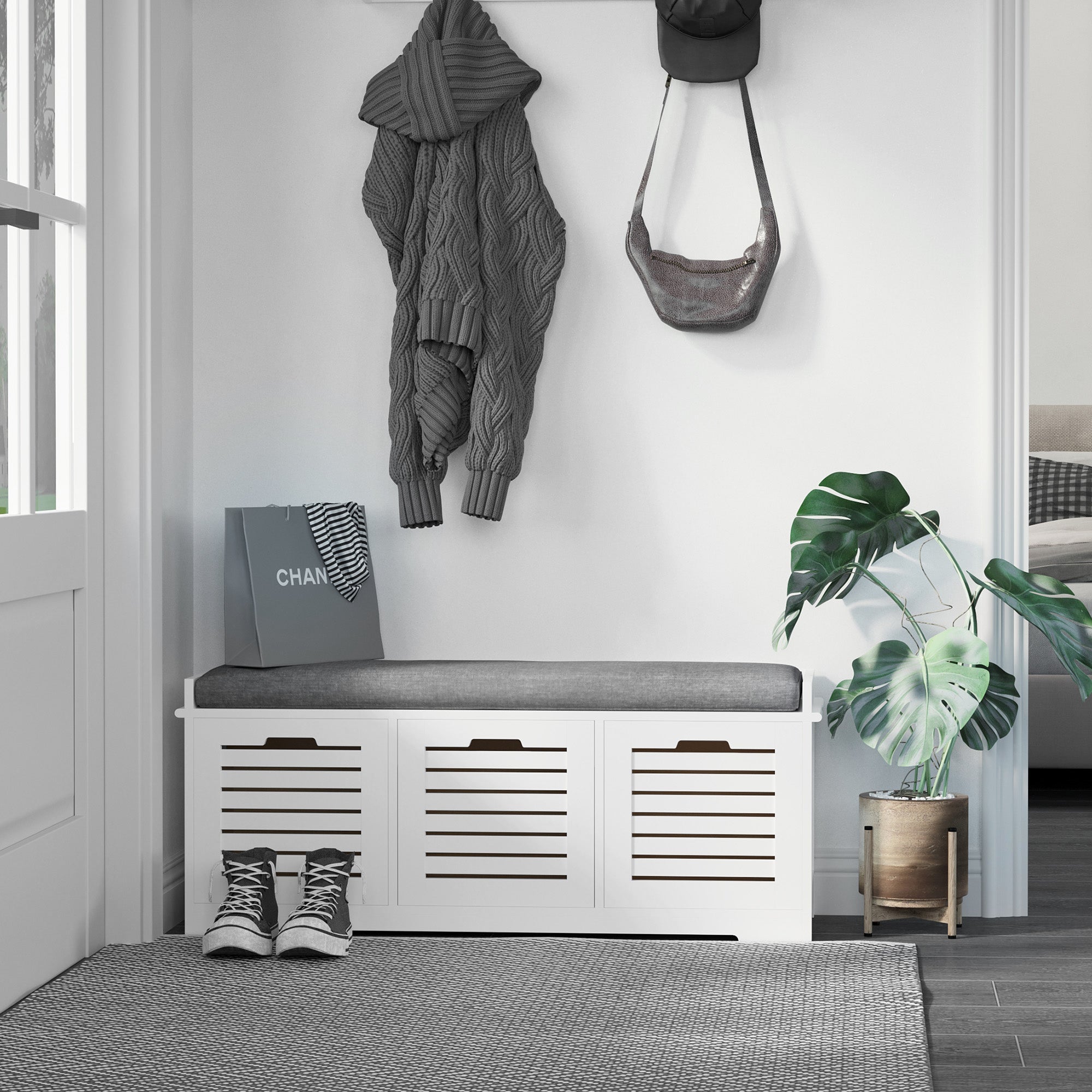 Shoe Storage Bench with 3 Drawers & Removable Grey Seat Cushion Hallway Organisation furniture