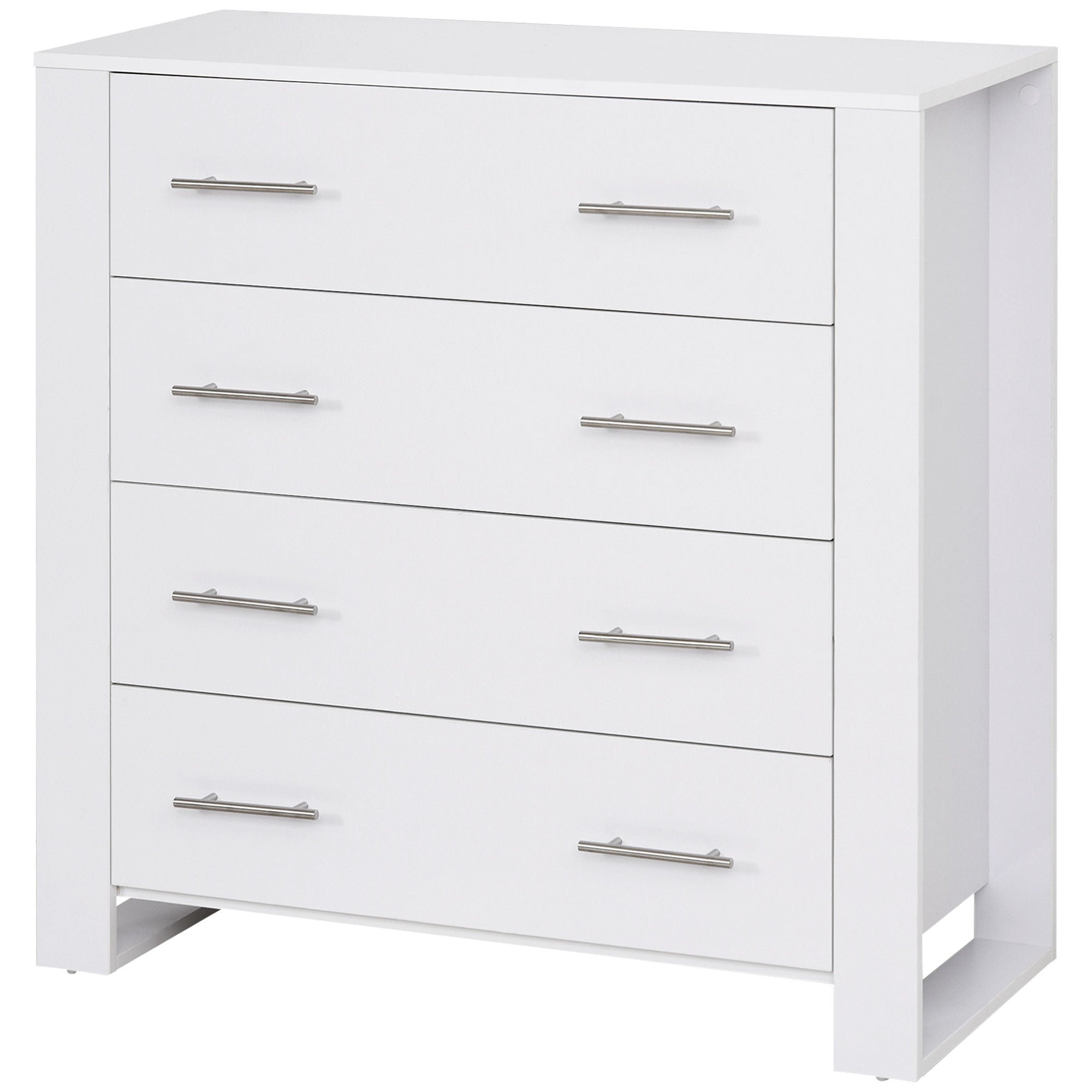 Chest Of 4 Drawers Storage Cabinet Bedroom Clothes w/Metal Handles Base Freestanding Unit Furnishing Living Room White