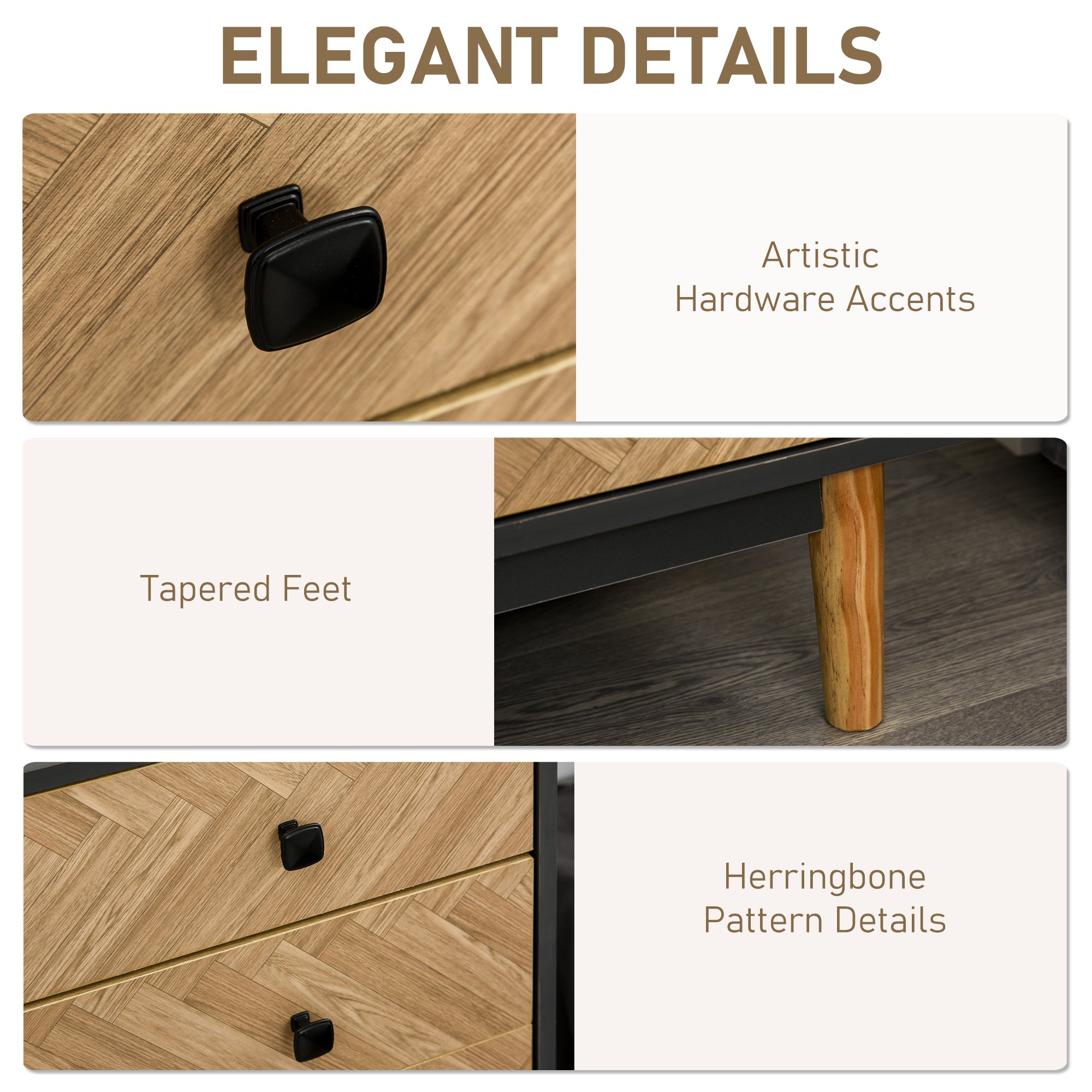 Ready to organize your home space? Pick up the tallboy chest of drawers, and you'll be ready in no time. Bold light-dark contrast, unique herringbone pattern on five drawers, elegant tapered feet and coordinating square hardware accents fit most modern or traditional setting. 5 easy-glide drawers provides lots of space for blankets, clothing and other items. Crafted of solid E1 particleboard and pine wood legs, chest of drawers bedroom is a durable and attractive addition to living or bedroom space.