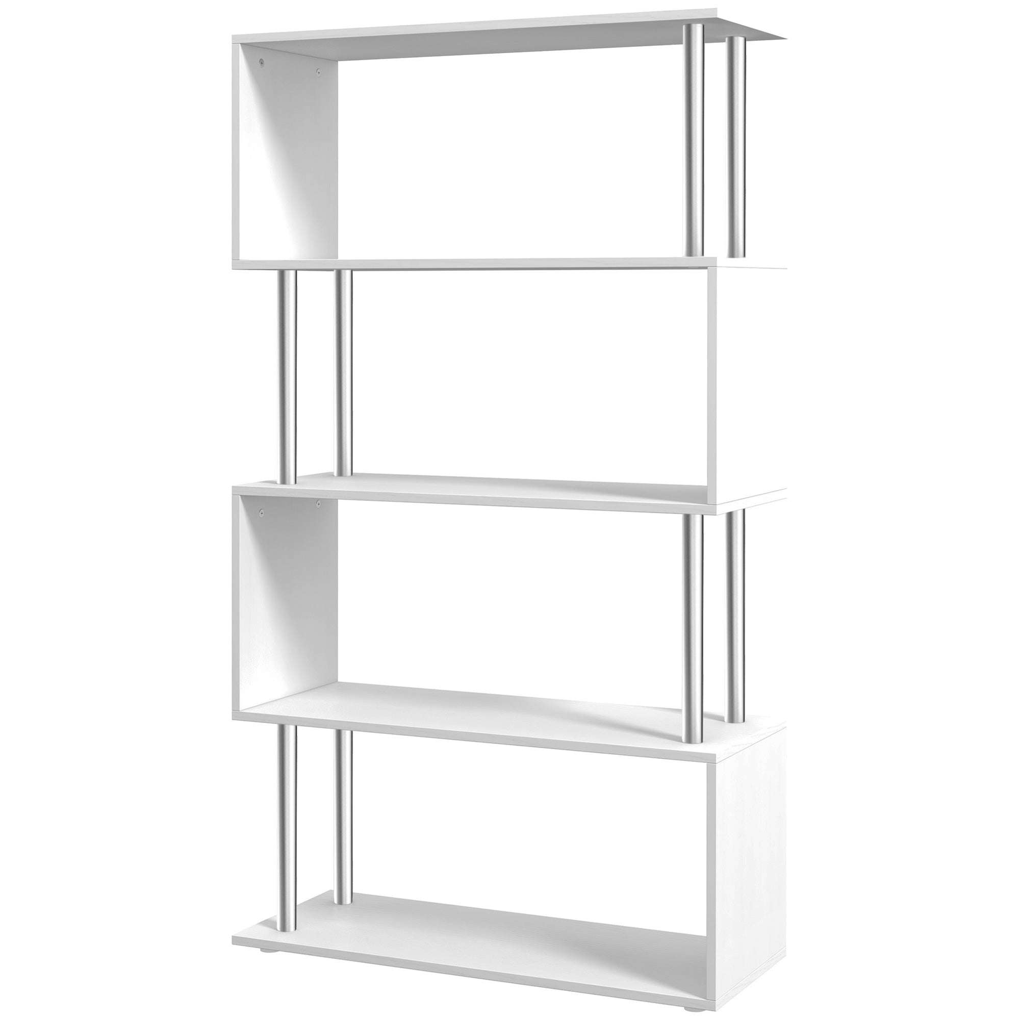 S Shape Bookcase, 5 Tiers Bookshelf, Modern Freestanding Storage Shelf for Home Office, Study, Living Room, 80 x 30 x 145cm, White