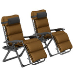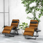 Lounging with a friend has never been so relaxing, thanks to this outdoor recliner chair set. The backs recline back to a position you want, to a maximum angle. Each zero gravity chair is fitted with 10 cm seat cushions - sink in comfortably to relax outdoors. The steel frames mean each garden lounger is strong and supportive; complete with a handy removable side tray.