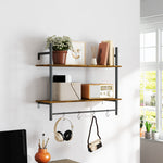 Wall Mounted Floating Shelves with 4 Hooks, Rustic Wall Shelf Unit for Living Room, Entryway, Rustic Brown