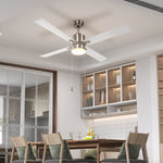 Ceiling Fan with LED Light, Flush Mount Ceiling Fan Lights with Reversible Blades, Pull-chain, Silver and Natural Tone