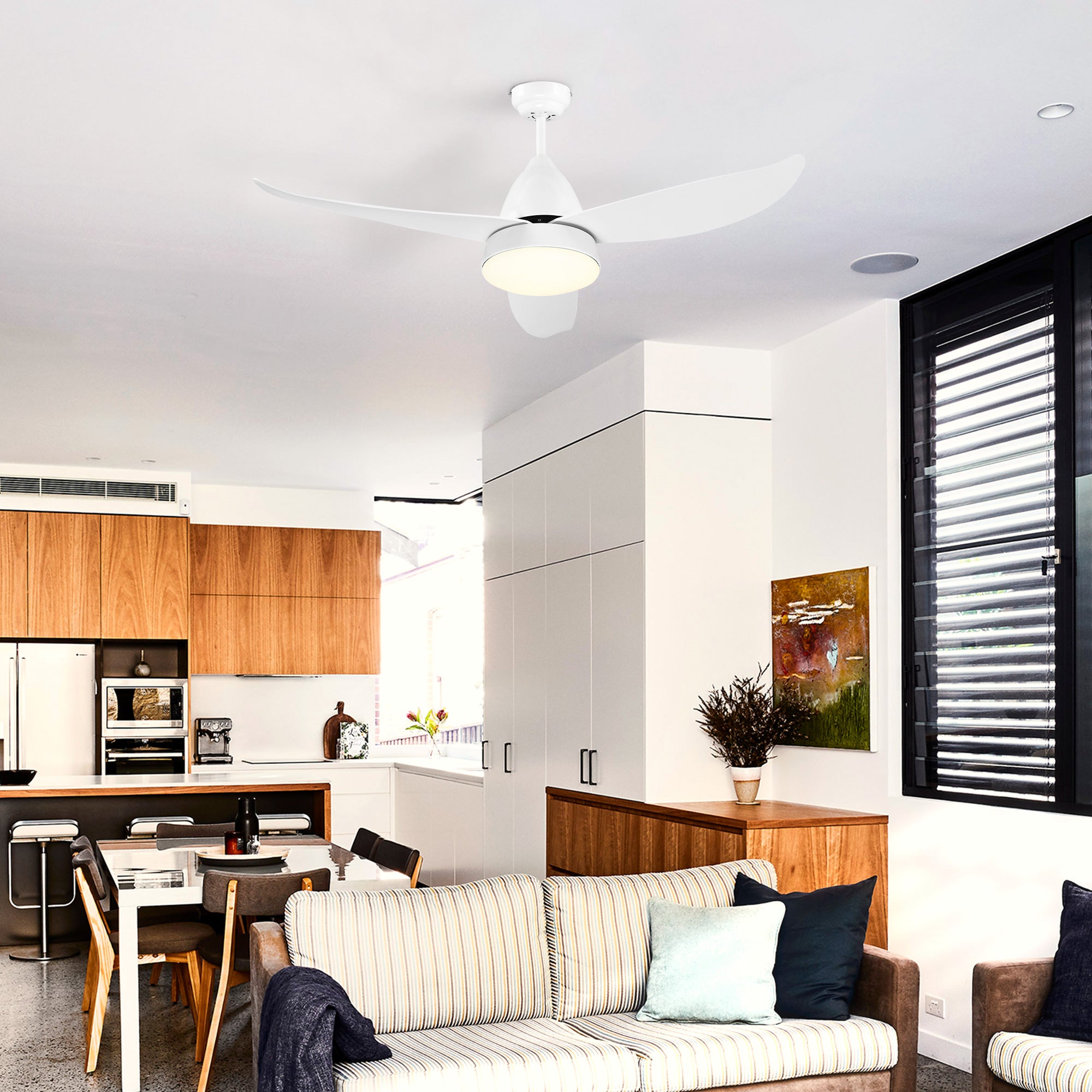Reversible Ceiling Fan with Light, 3 Blades Indoor Modern Mount White LED Lighting Fan with Remote Controller, for Bedroom, Living Room, White