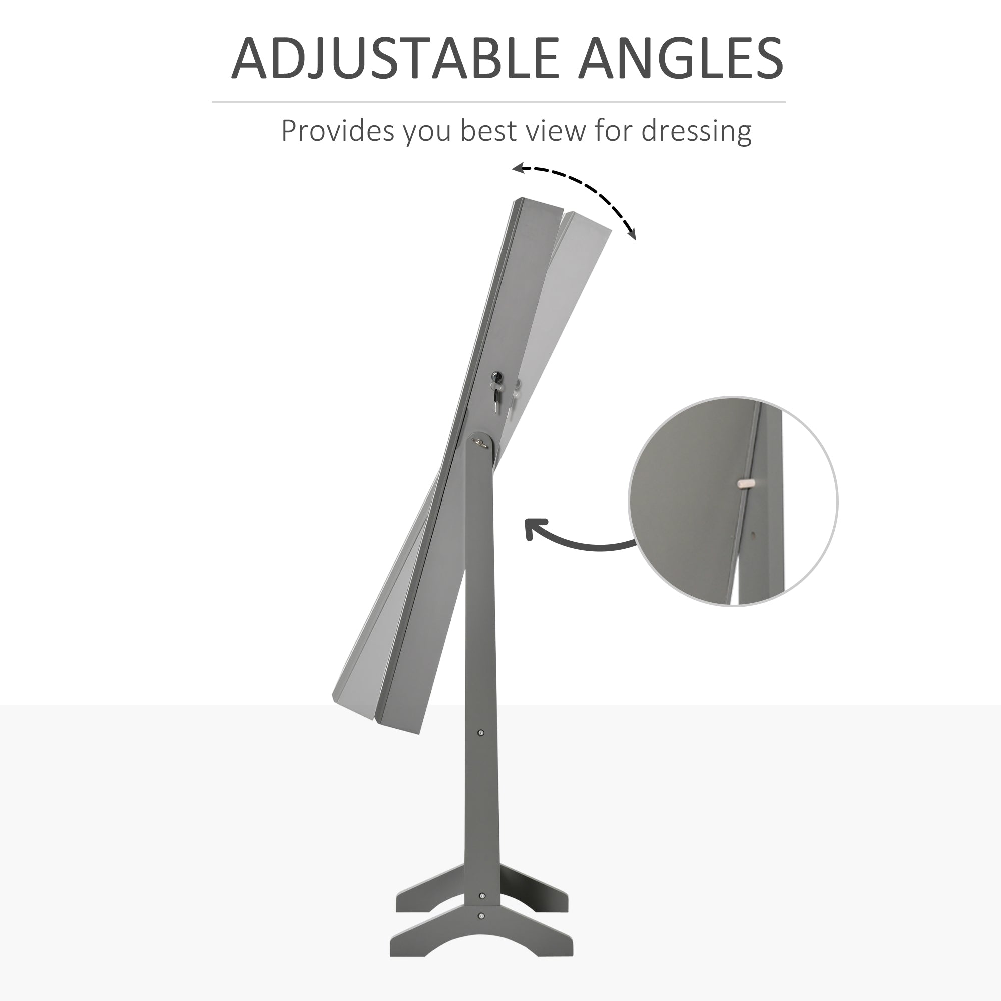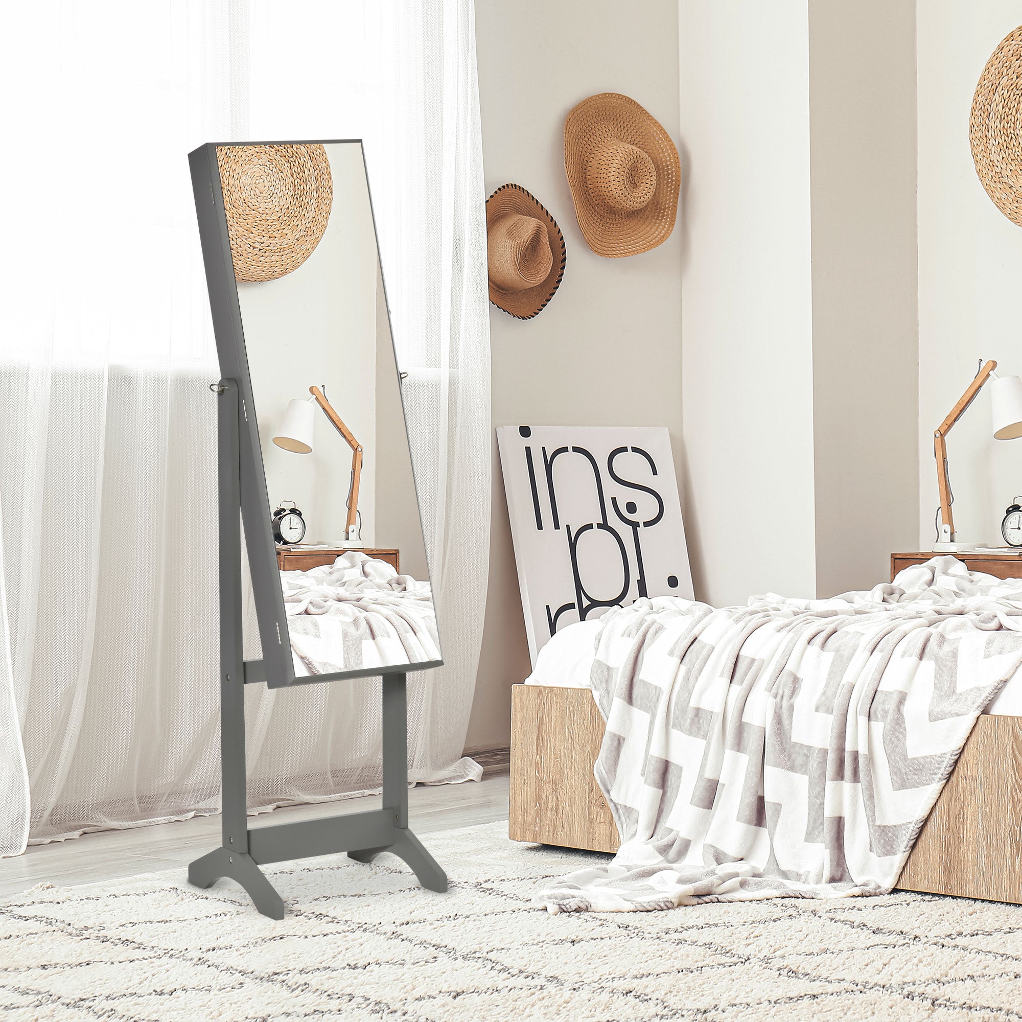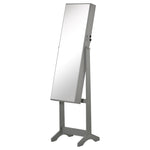 Full Length Mirror with Storage, Jewellery Cabinet with Mirror, Adjustable Angle and Stand, Lockable Jewellery Organiser for Bedroom Dressing Room, Grey