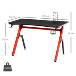 RGB 120 x 66cm Gaming Desk, Computer Table with Carbon Fibre Surface, Headphone Hook, Cup Holder, Controller Rack, Home Office Desk, Black and Red