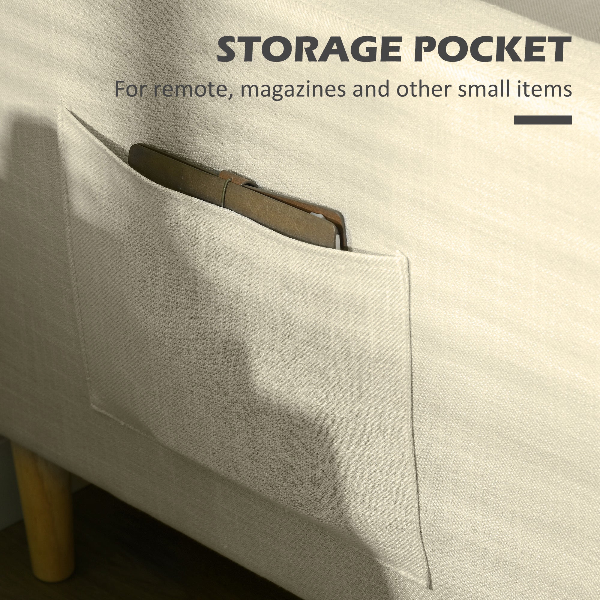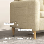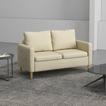 Two Seater Sofa for Living Room, Modern Fabric Couch with Wood Legs and 2 Pockets for Bedroom and Home Office, Beige