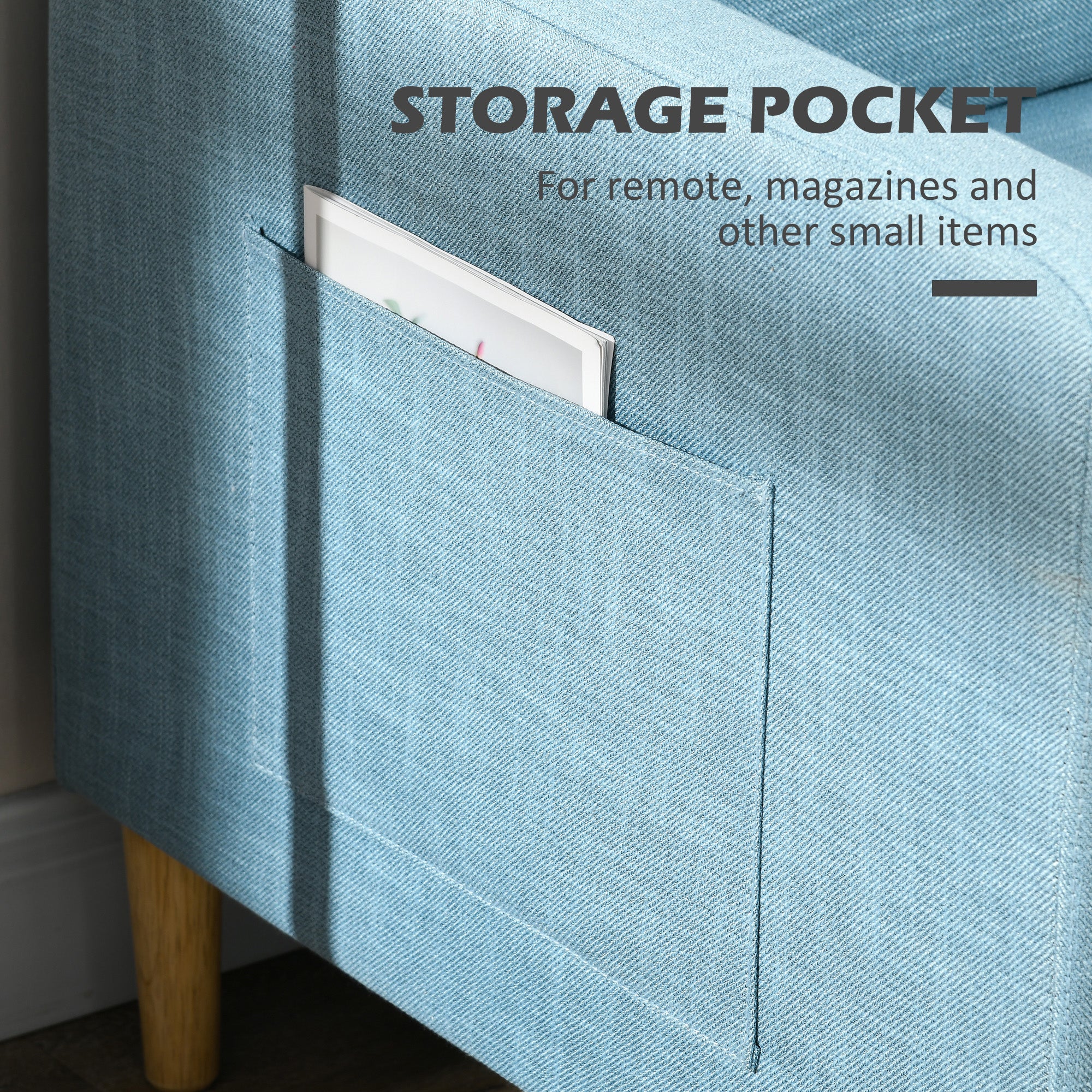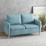 Two Seater Sofa for Living Room, Modern Fabric Couch with Wood Legs and 2 Pockets for Bedroom and Home Office, Blue