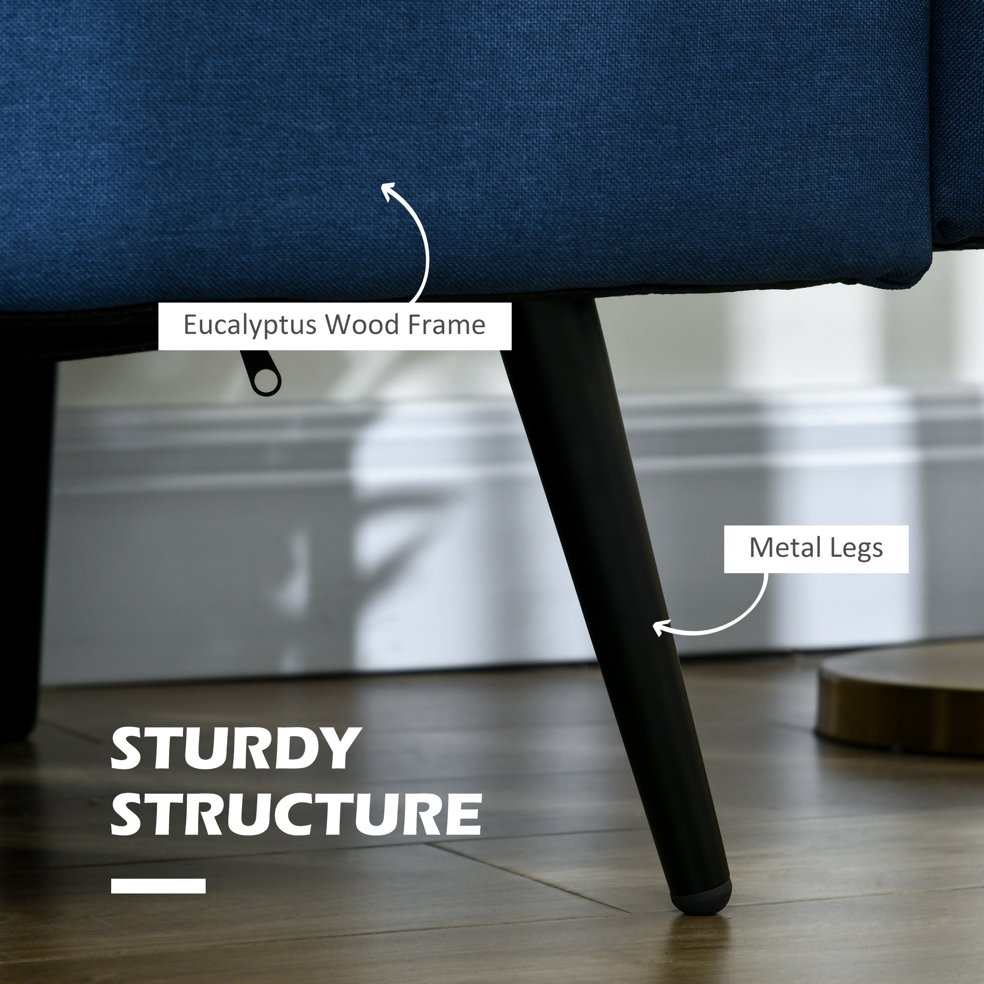 Material: Linen (100% Polyester), Foam, Eucalyptus Wood, Steel