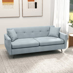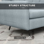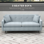 165cm 3 Seater Sofa for Living Room, Modern Fabric Couch, Tufted Small Couch Sofa Settee with Steel Legs and 2 Storage Pockets for Bedroom and Home Office, Blue