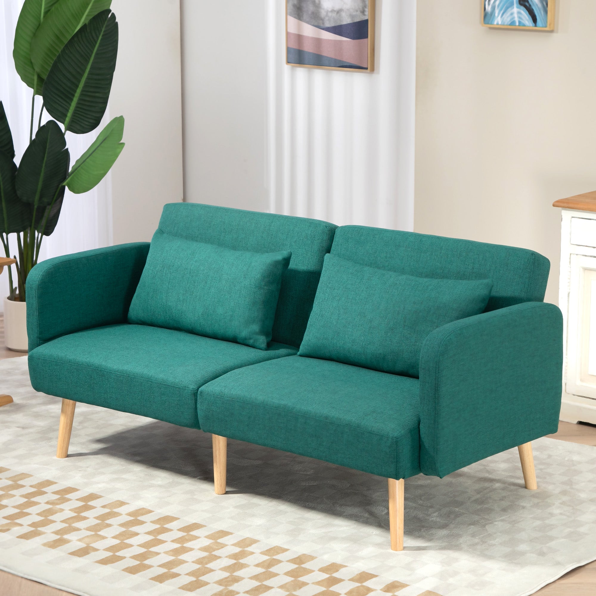 2/3 Seater Sofa Bed, Convertible Bed Settee, Fabric Sofa Couch with 2 Cushions for Living Room, Guest Room, Green