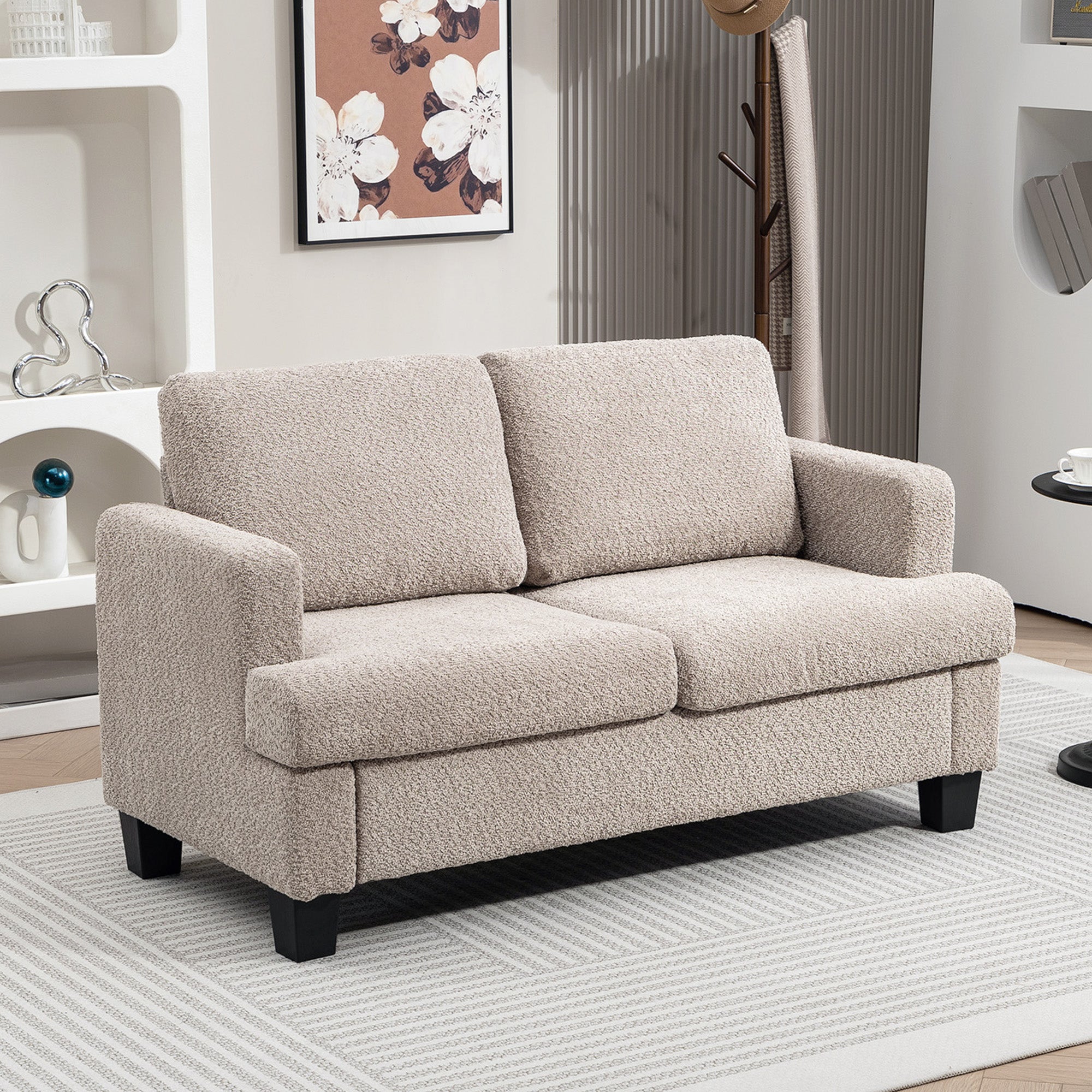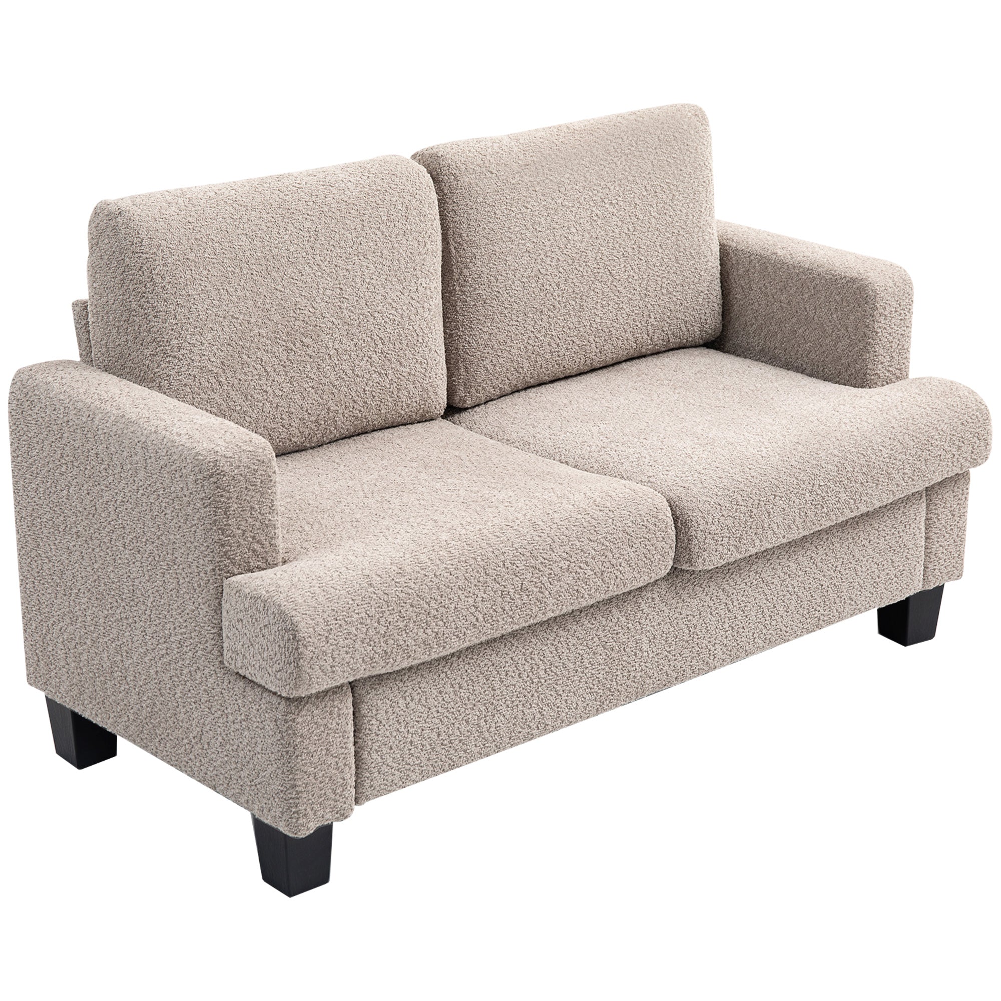 2 Seater Sofa, 138 cm Loveseat Sofa with Removable Back Cushions, Chenille Fabric Small Couch Settee with S-springs for Living Room, Bedroom, Home Office, Light Brown