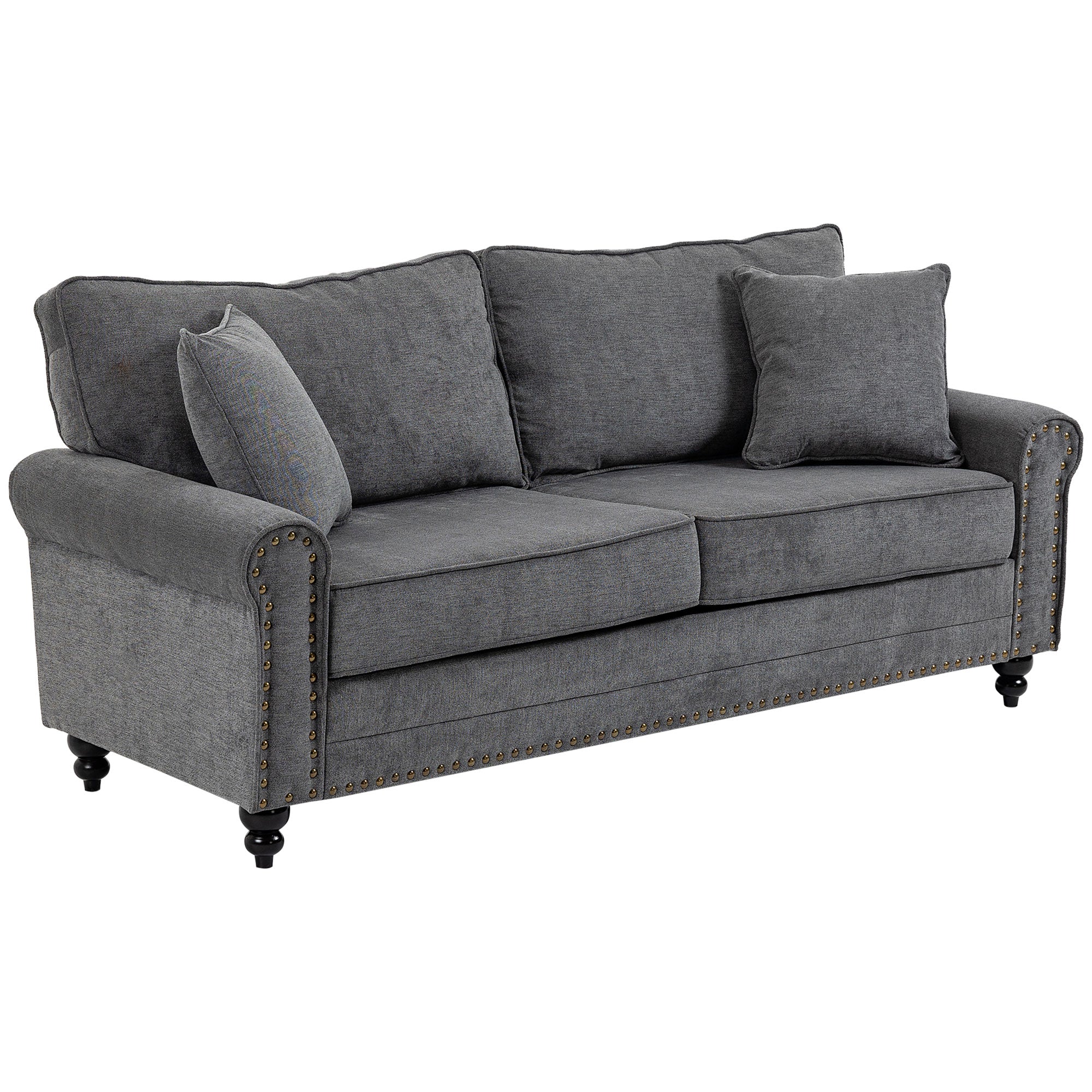 3 Seater Sofas for Living Room, Fabric Sofa with Felt Mats, Cushions and Pillows, Grey