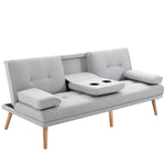 Sofa Bed, Fabric 3-seater Click Clack Sofa Bed with 2 Cup Holders, Convertible Bed Settee, Futon Sofa with Removable Armrest, for Living Room, Spare Room, Bed Room, Guest Room, Grey