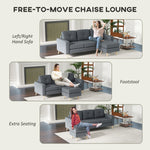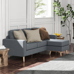 3 Seater Sofa with Footstool, Fabric L-Shaped Sofa, Sectional Couch with Wood Legs, Tufting Cushioned Back for Small Space, Living Room, Office, Dark Grey