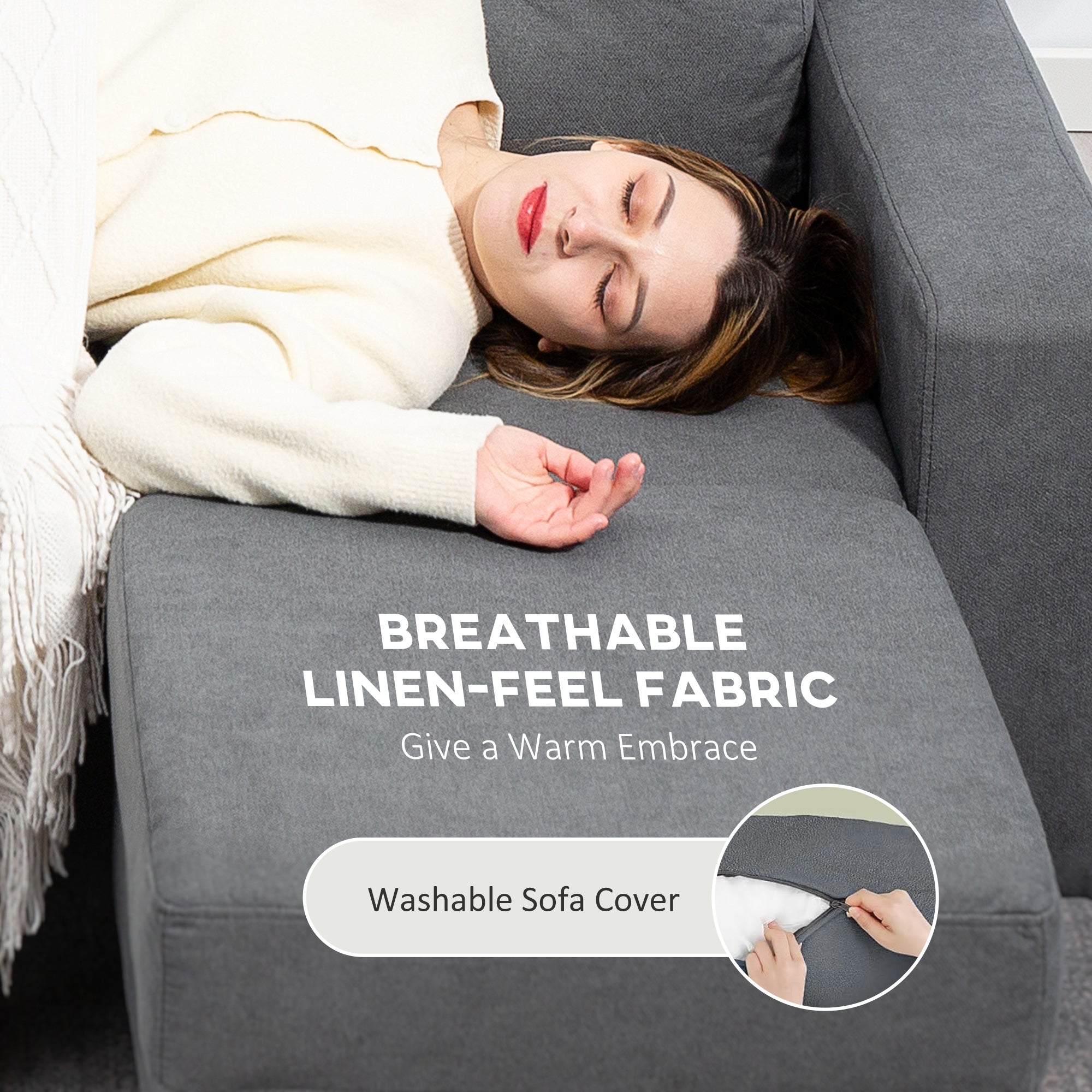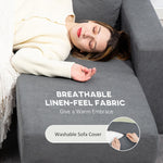 Linen-look upholstery is smooth and breathable