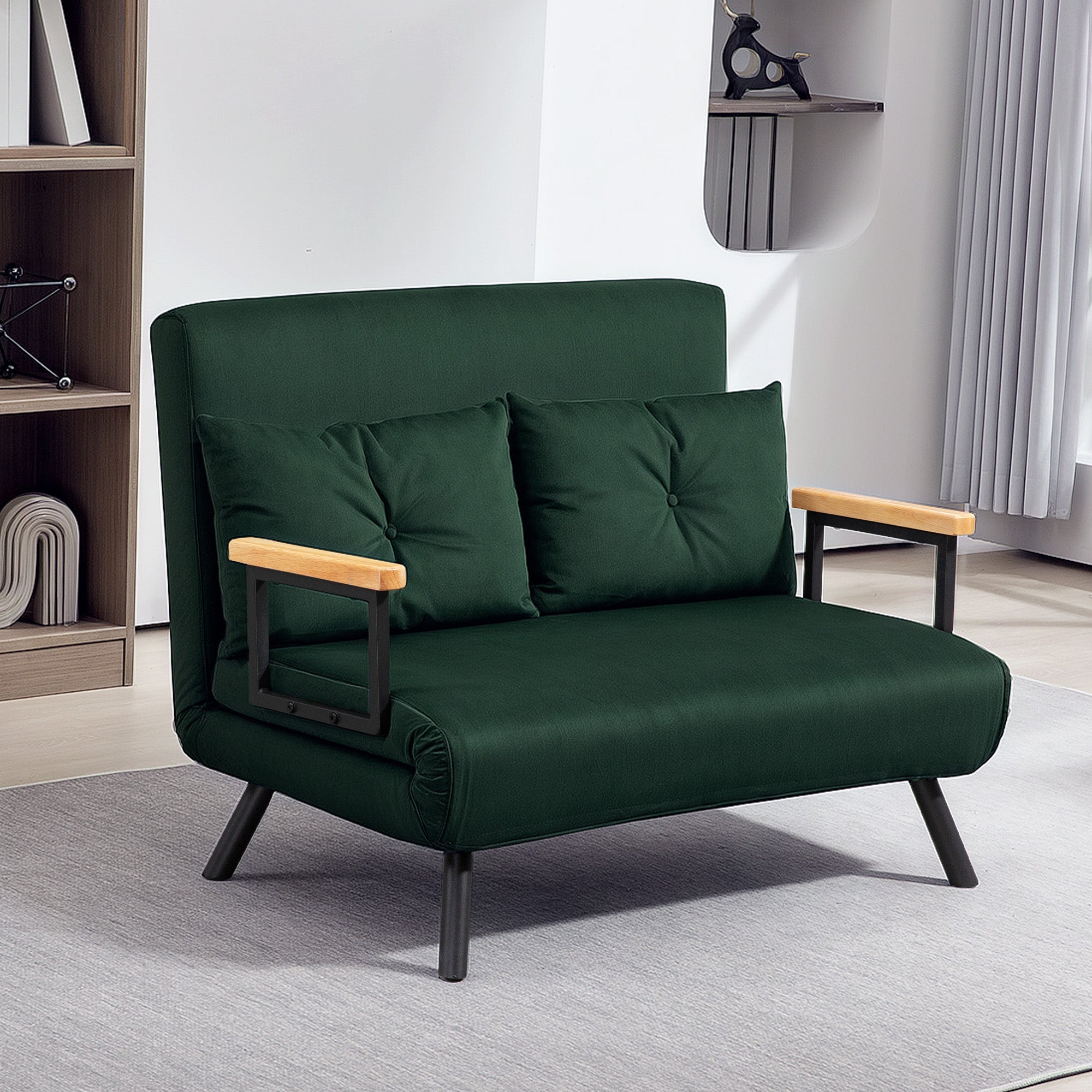 4-in-1 Velvet-Feel Double Sofa Bed, with Pillows - Green