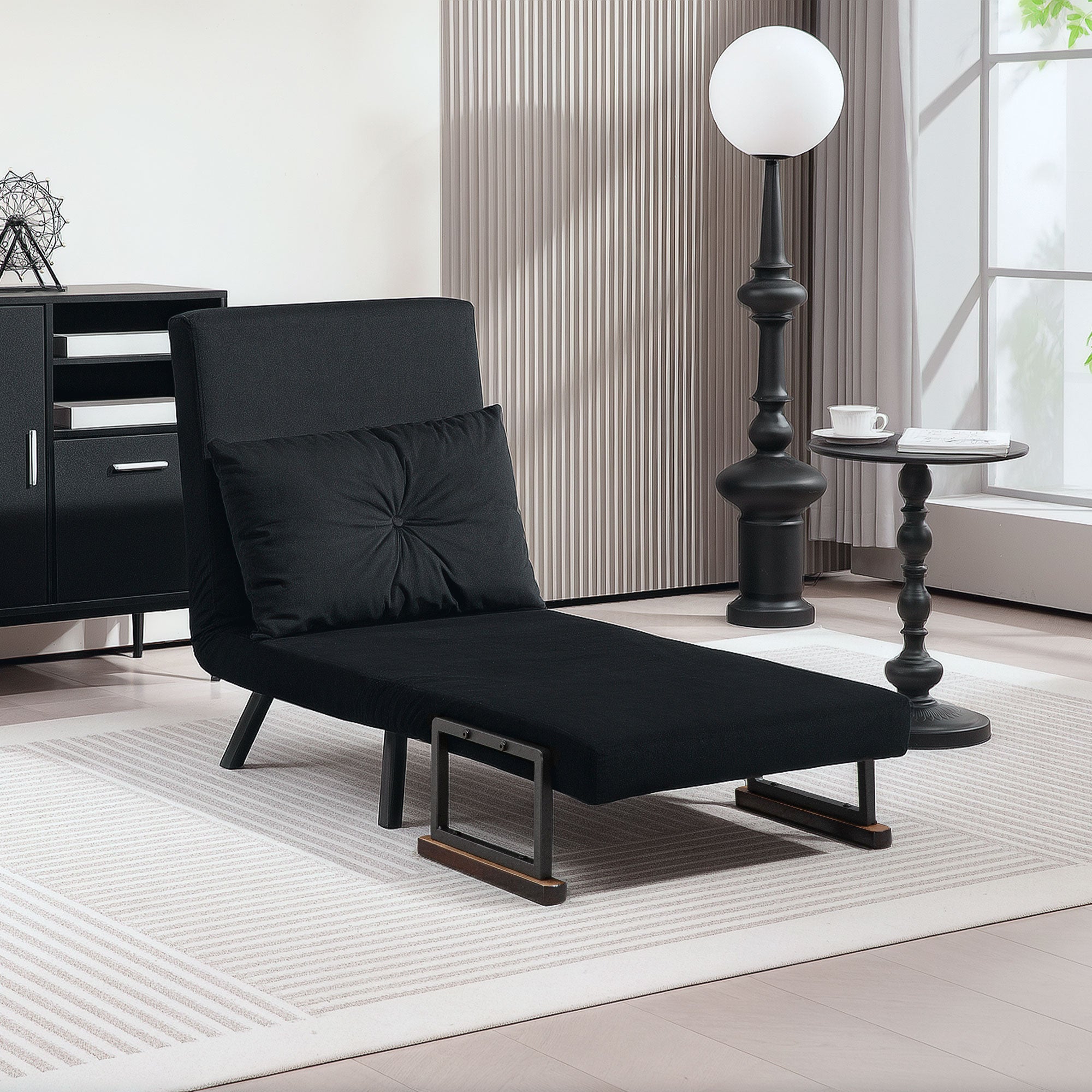 4-in-1 Velvet-Feel Single Chair Bed, with Pillow - Black