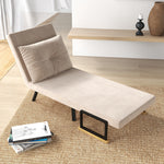 4-in-1 Velvet-Feel Single Chair Bed, with Pillow - Beige