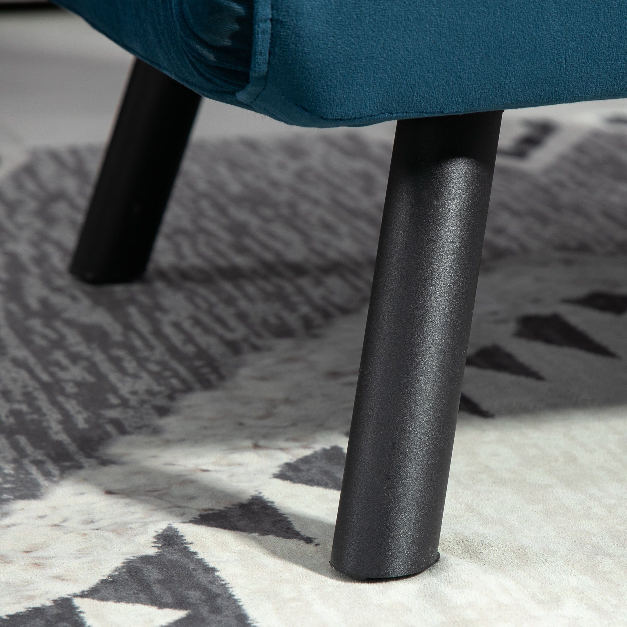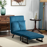 4-in-1 Velvet-Feel Single Chair Bed, with Pillow - Navy Blue