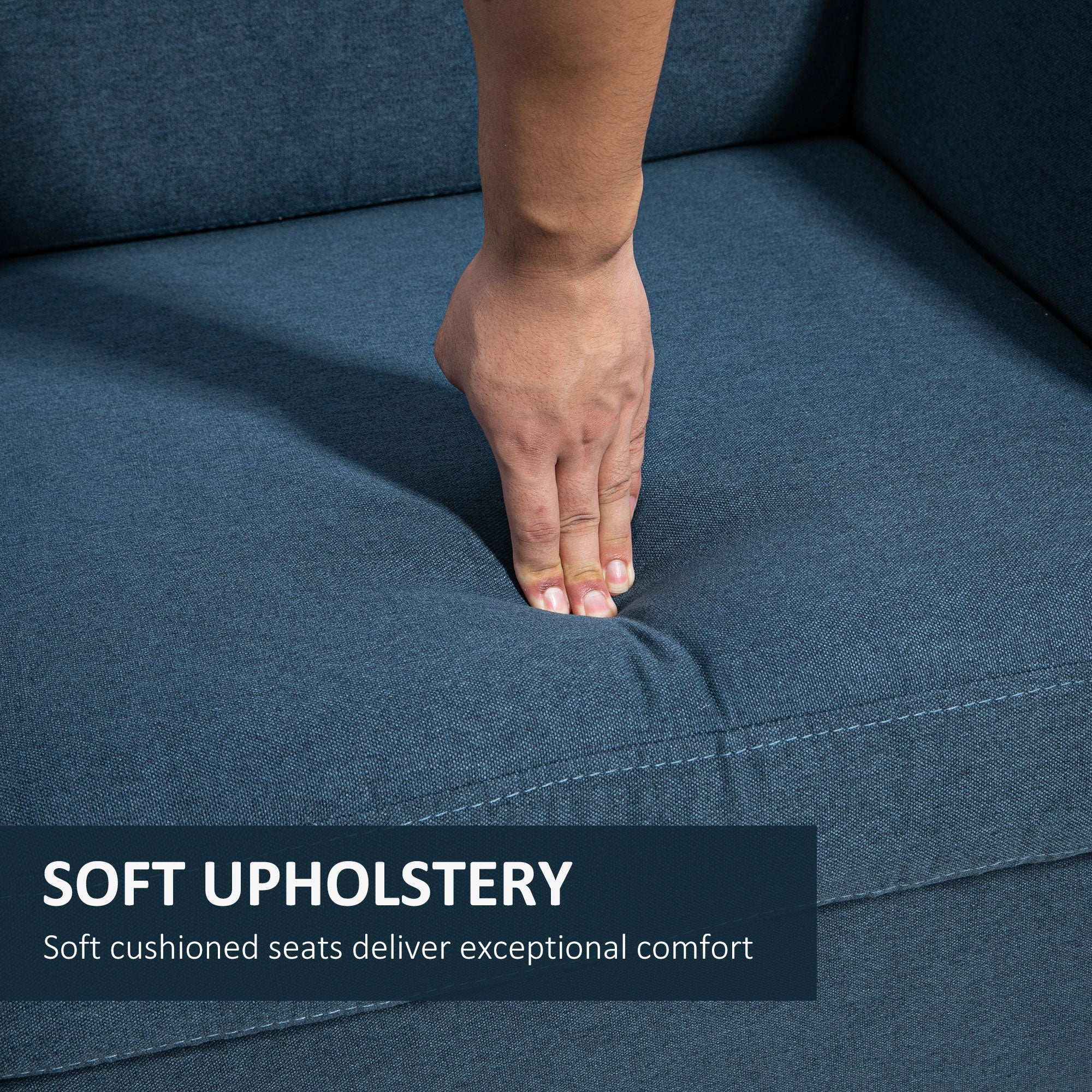Compact Loveseat Sofa, Modern 2 Seater Sofa for Living Room with Wood Legs and Armrests, Blue