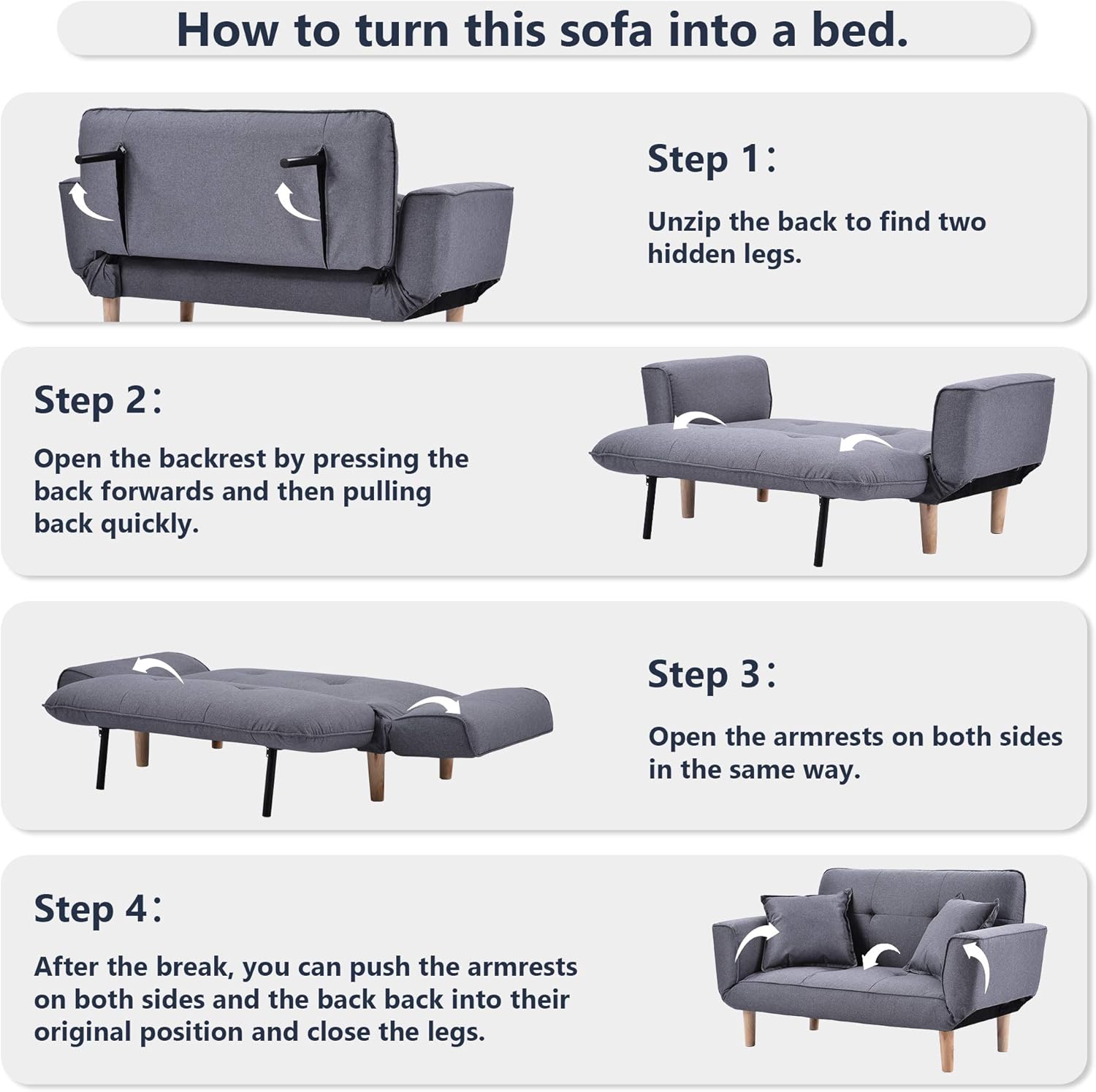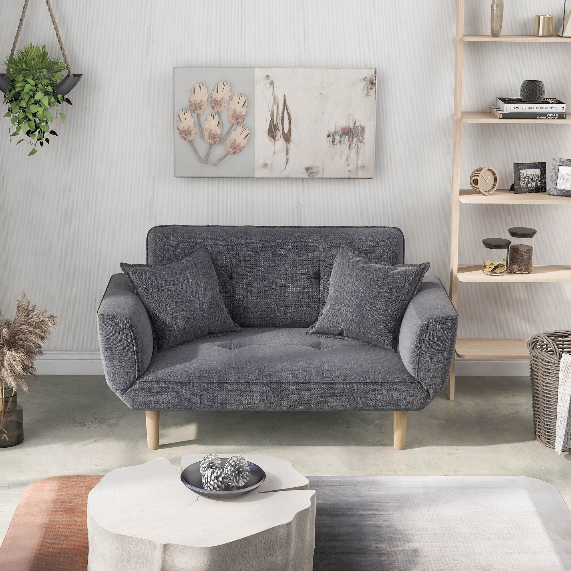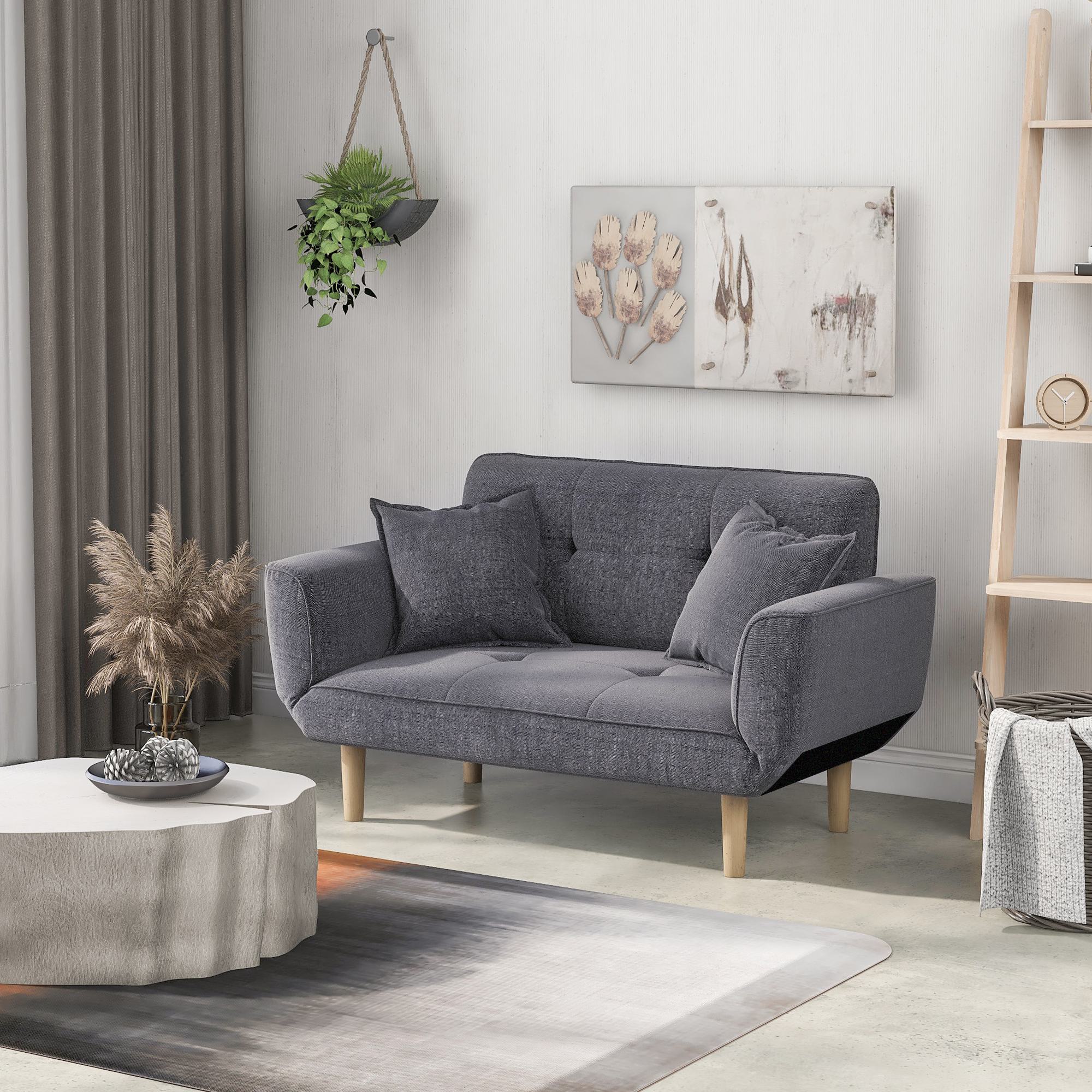 Expandable 2 Seater Bed Settee with 3 Adjustable Positions, Easy Assembly, Modern Fabric Loveseat for Flats, Dormitories, 125x61x70 cm, Grey