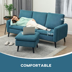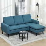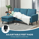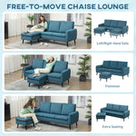 Corner Sofa with Reversible Chaise Lounge, Corduroy Fabric 3 Seater Sofa Settee for Living Room, L Shaped Couch with Scatter Back, Left/Right Hand, Blue