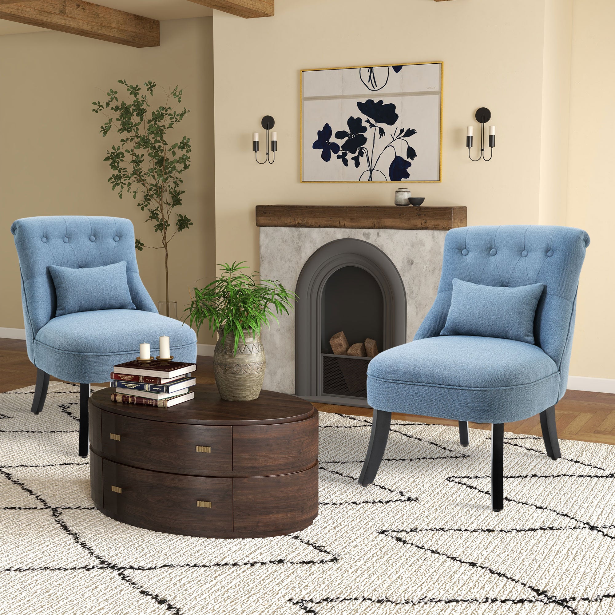 Fabric Single Sofa, Tub Chair, Upholstered Bedroom Chair with Pillow, Solid Wood Leg for Home, Living Room, Dining Room, Set of 2, Blue
