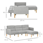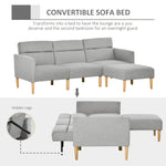 L Shape Sofa Bed Set, Linen Fabric Corner Sofa Bed with Rubber Wood Legs and Footstool, Light Grey