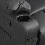 knows the first thing you want to do after a long work day, is relax. This cinema chair gives you the perfect spot to do that. A large square shape to give you plenty of room to sit, it thickly padded all over - simply sit down and sink in. Features a 135° reclining back, with manual footrest for extra relaxation. Faux leather upholstery for style, complete with two cup holders and two pockets for handiness.