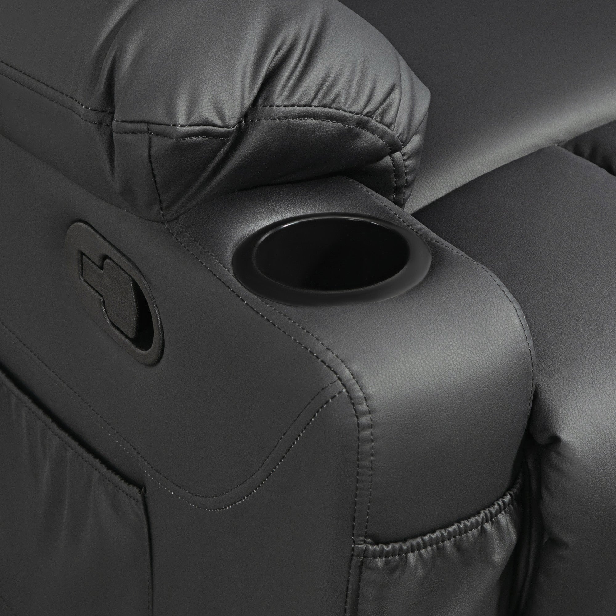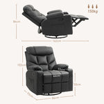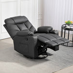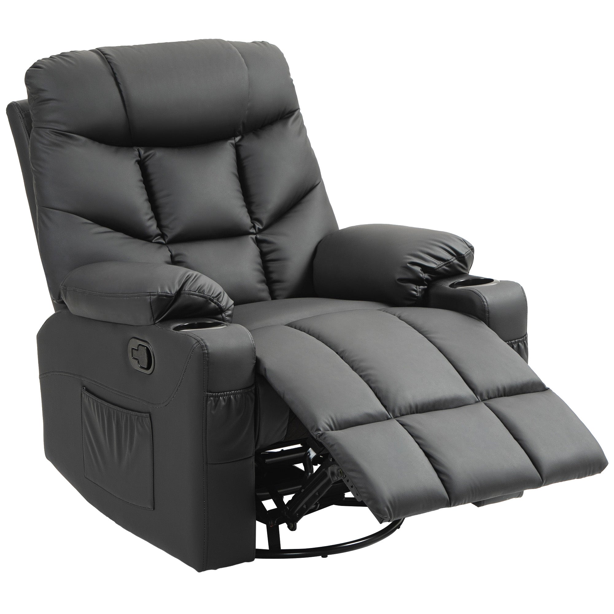 Manual Reclining Chair, Recliner Armchair with Swivel, Faux Leather, Footrest, Cup Holders, 86x93x102cm, Black