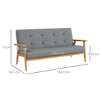 3 Seater Sofa Modern Linen Fabric Upholstery Tufted Couch with Rubberwood Legs for Living Room and Kitchen, Dark Grey